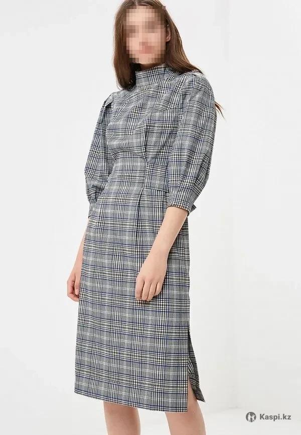 Платье в клетку, миди длины. На плече застегивается на металлические пуговицы нм плече.Состав: вискоза - 70%, полиэстер - 30% Хорошо в офис и на занятия