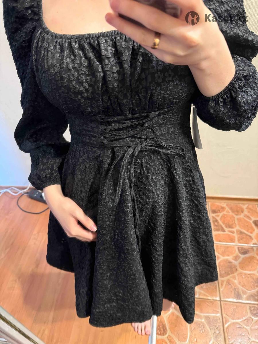 Черное платье мини с цветочным принтом, размер s, рост модели 157, новое с биркой