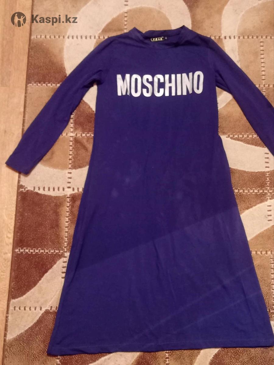 Платье трикотажное , хорошего качества, ростовка 166-172. Размер на 48-50 подойдет. Есть 2 кармана потайных сбоку. Спереди надпись известного бренда Moschino.