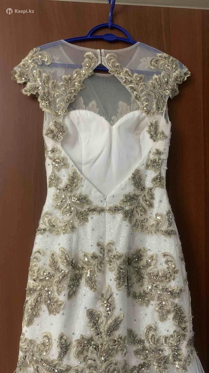 Продам шикарное платье , модель рыбка. Покупала в фирменном салоне ANALEONI бренда Джованни. Красивая ручная работа пайетки с золотыми узорами, пышный низ из много слоев фатина, спинка открытая.