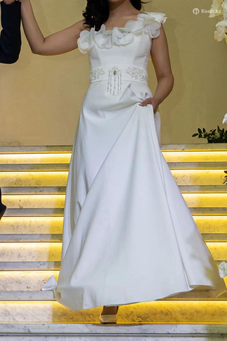 Продаю свадебное платье с Кыз узату Одевала один раз 05.04.2025, всего на пару часов. Платье в отличном состоянии, после профессиональной химчистки. Элегантный А-силуэт. Особенность платья — трансформируемые лямки, которые можно по-разному драпировать: — перекинуть через одно плечо для асимметричного образа — завязать на талии, подчеркивая силуэт Кольцо (обруч для юбки) — в подарок. Качество отличное, смотрится очень нежно и стильно. Пишите в личные сообщения, вышлю дополнительные фото и видео.