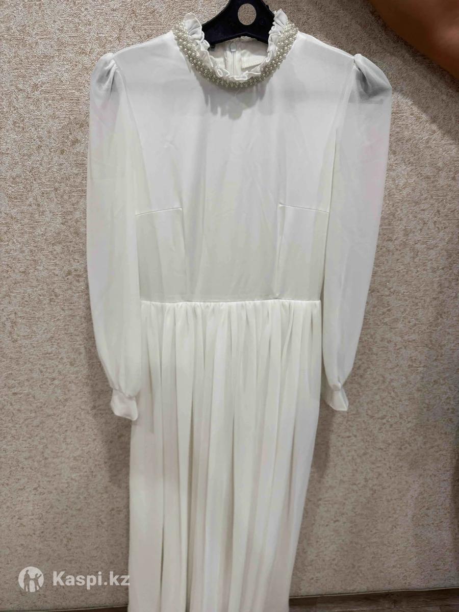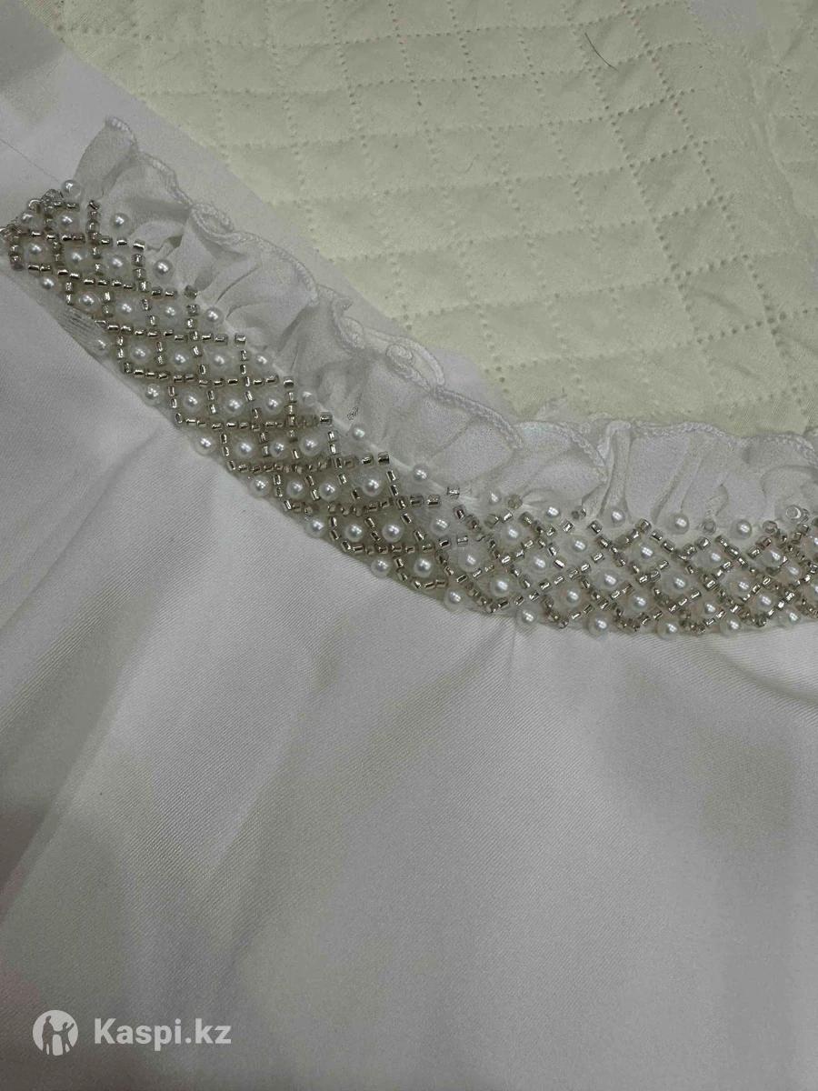 Состояние хорошее, одевала один раз. Ворот украшен жемчугом и бисером. Низ платья загрязнен от земли, требуется чистка — цена снижена.