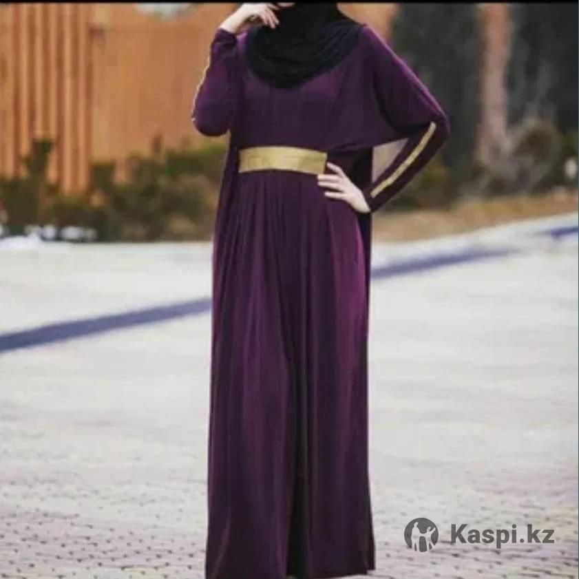 Размер стандарт. материал трикотаж, полу абая, отличный вариант на торжество, не прилегает к телу, цвет фиолетовый. Новое с этикеткой