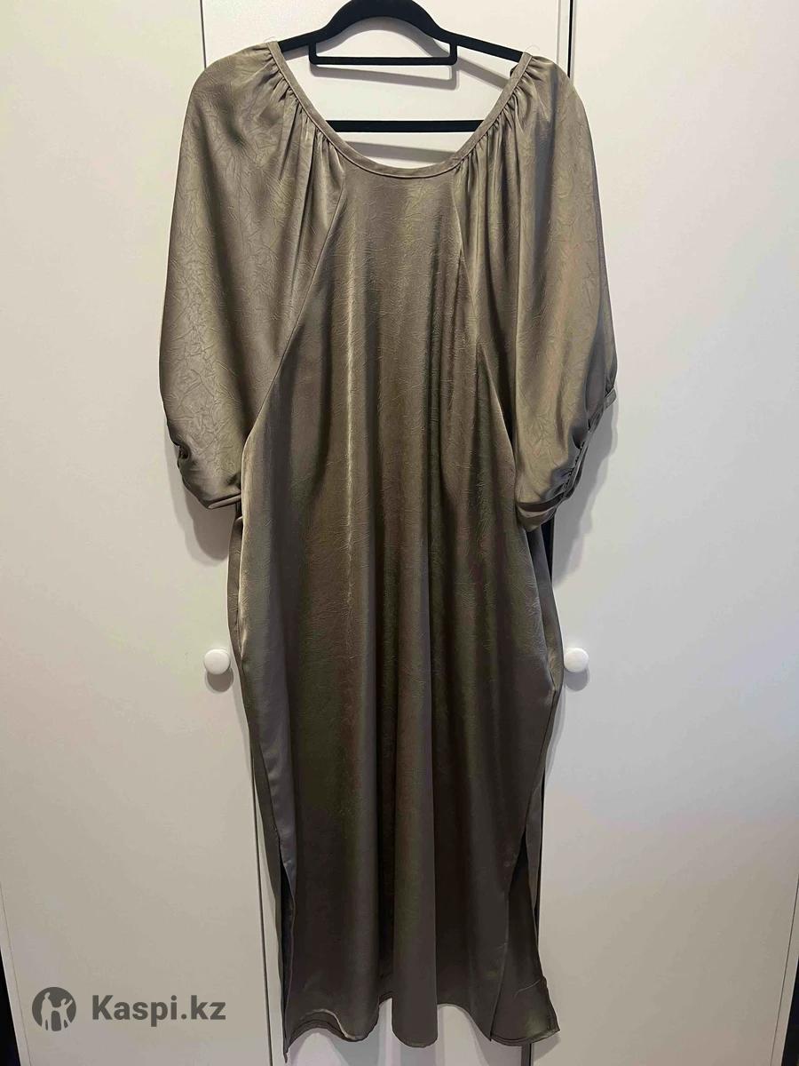 Платье женское. Размер 50-52. Ткань гладкая. Цвет зеленый, хаки. Свободного кроя.