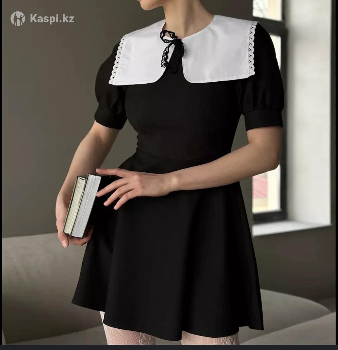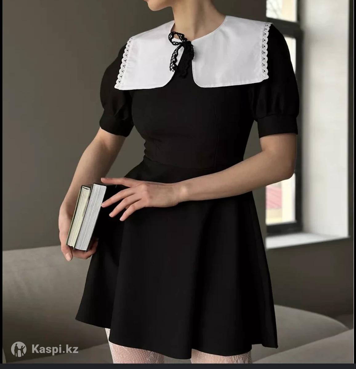 Черное платье с белым воротником