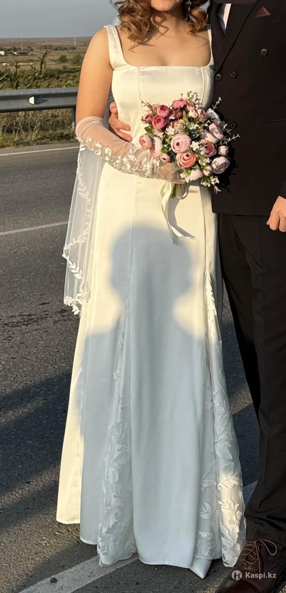 Продаю свадебное платье, как и все свадебные платья надето было только один раз, состояние отличное Ткань что-то между атлас и сатином Сшито было на мой размер 42-46 (корсетом можно дополнительно регулировать) Рост мой 160 плюс каблук Пошив на заказ 230к - отдам за 80к Референс - 3 фото