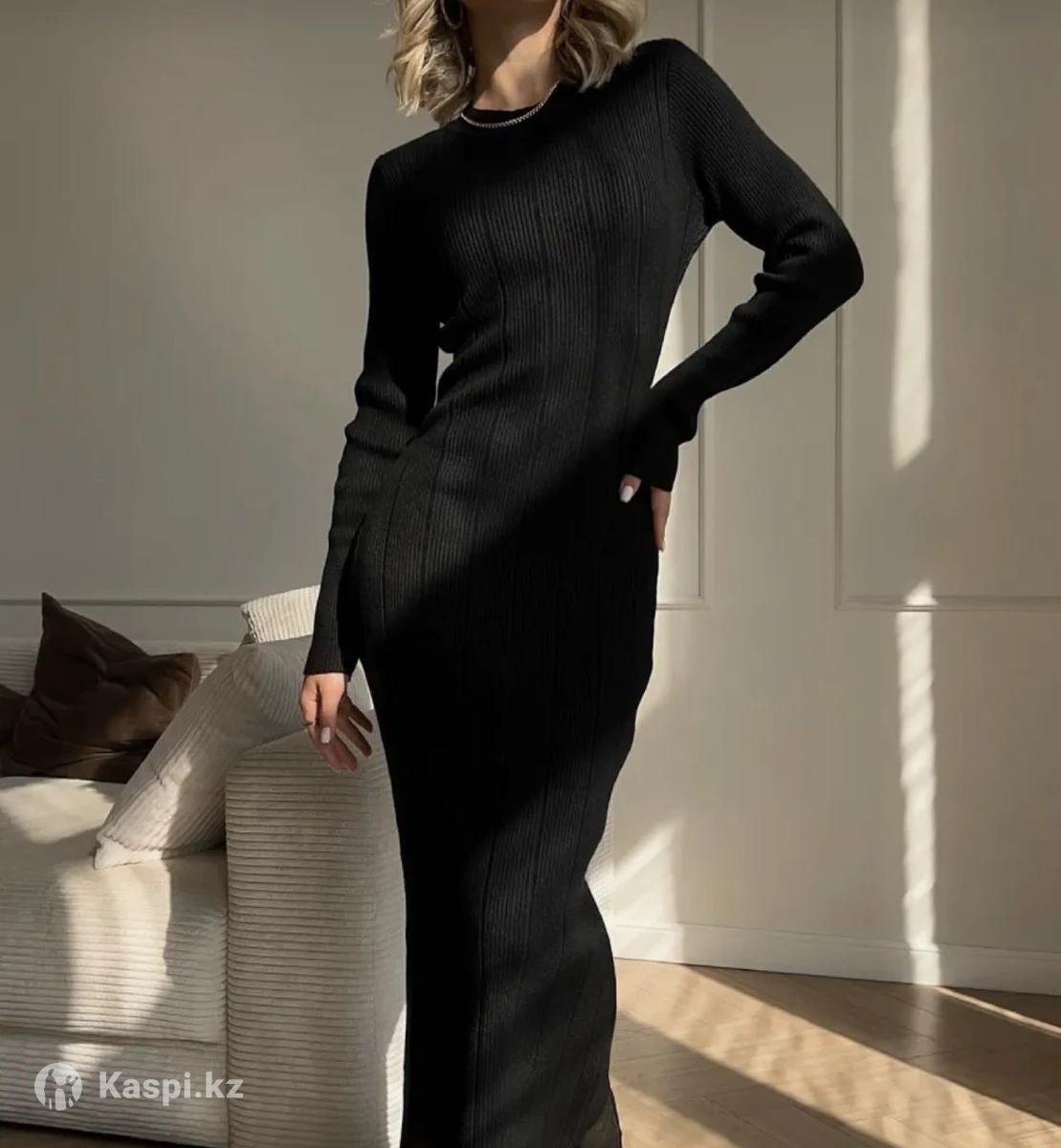 Цвет: черный Длина: миди Материал: трикотаж Сезон: осень/зима/весна Рукав: длинный Детали: лапша Фасон: платье- футляр Длина рукава: длинный Состояние: абсолютно новое (сохранены бирки)
