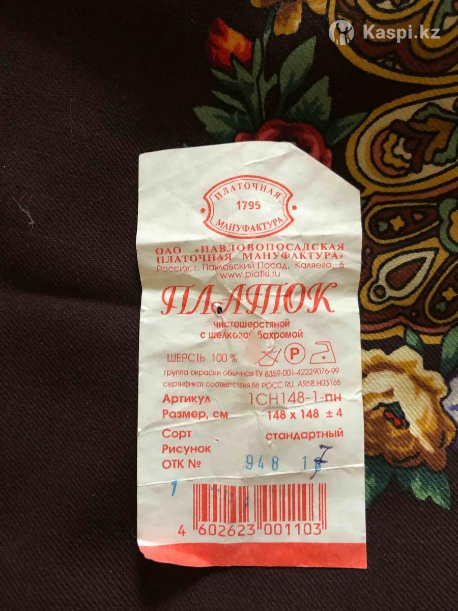 Павлопосадский платок. Чистошерстяной с шелковой бахромой. Размер 148/148 С этикеткой