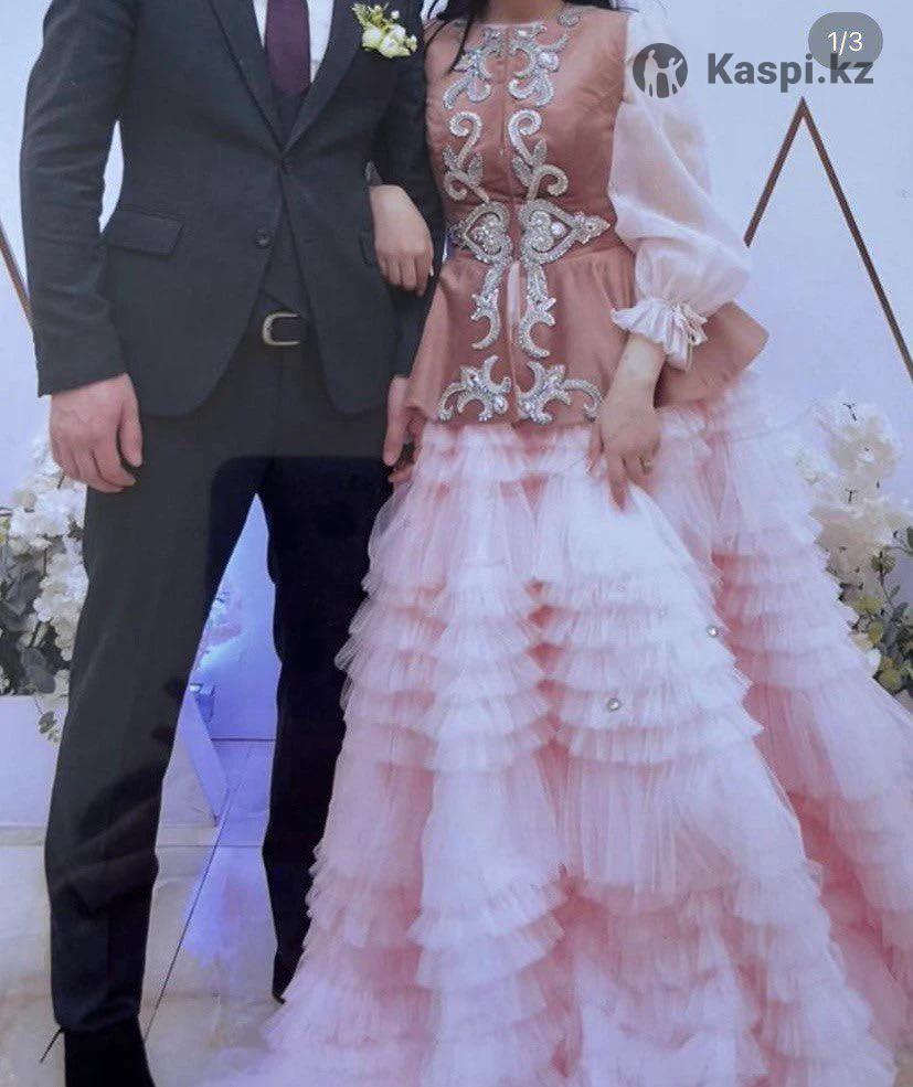 Продам шикарное платья на қыз ұзату ручная работа, сшили на заказ. В идеальном состоянии. Одевалась один раз. Размер 42-44.