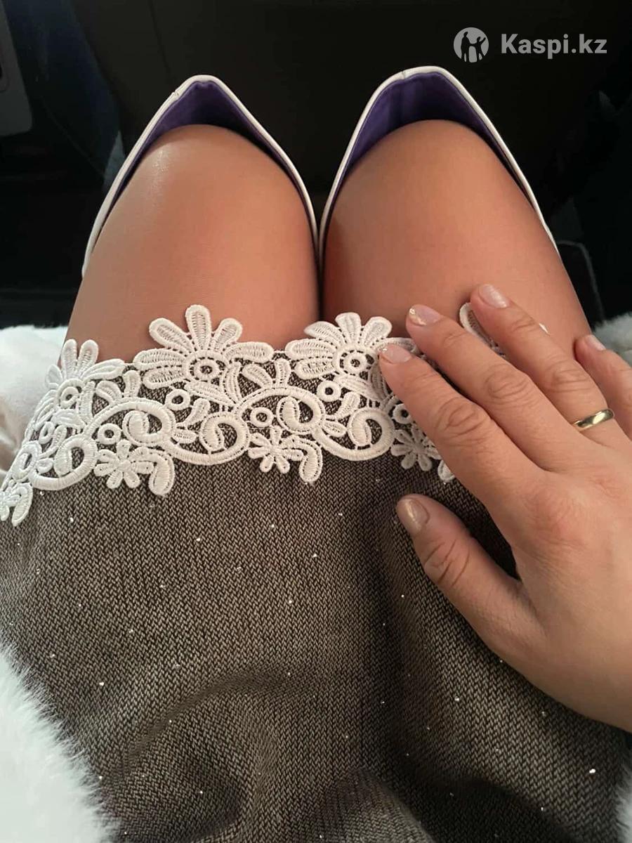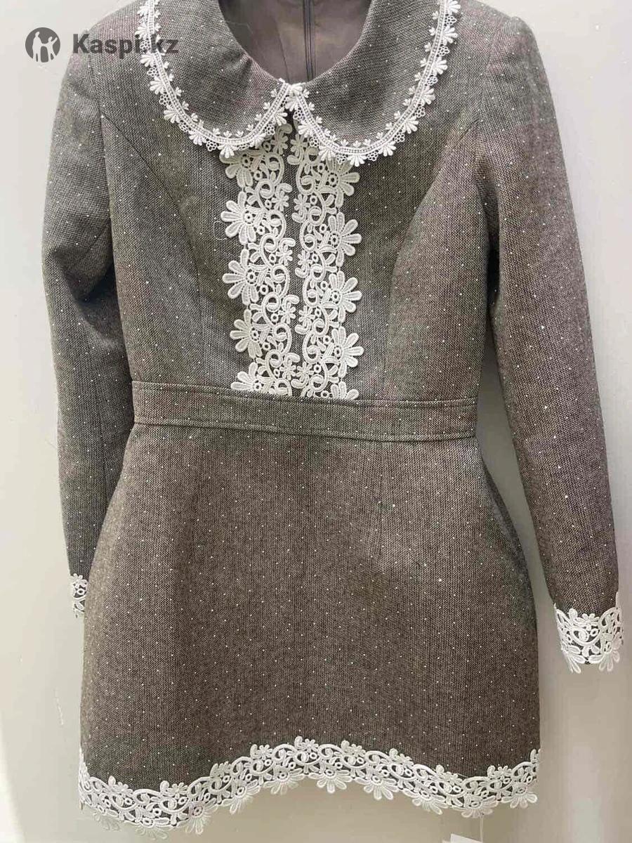 То самое твидовое серое платье с белыми кружевной отделкой . Очень удобная нарядная платье. С подкладом.