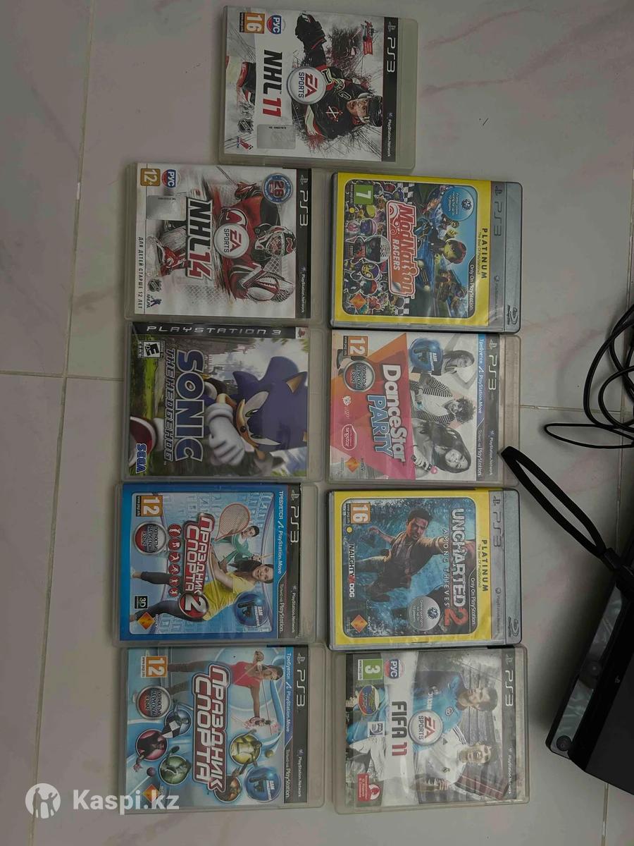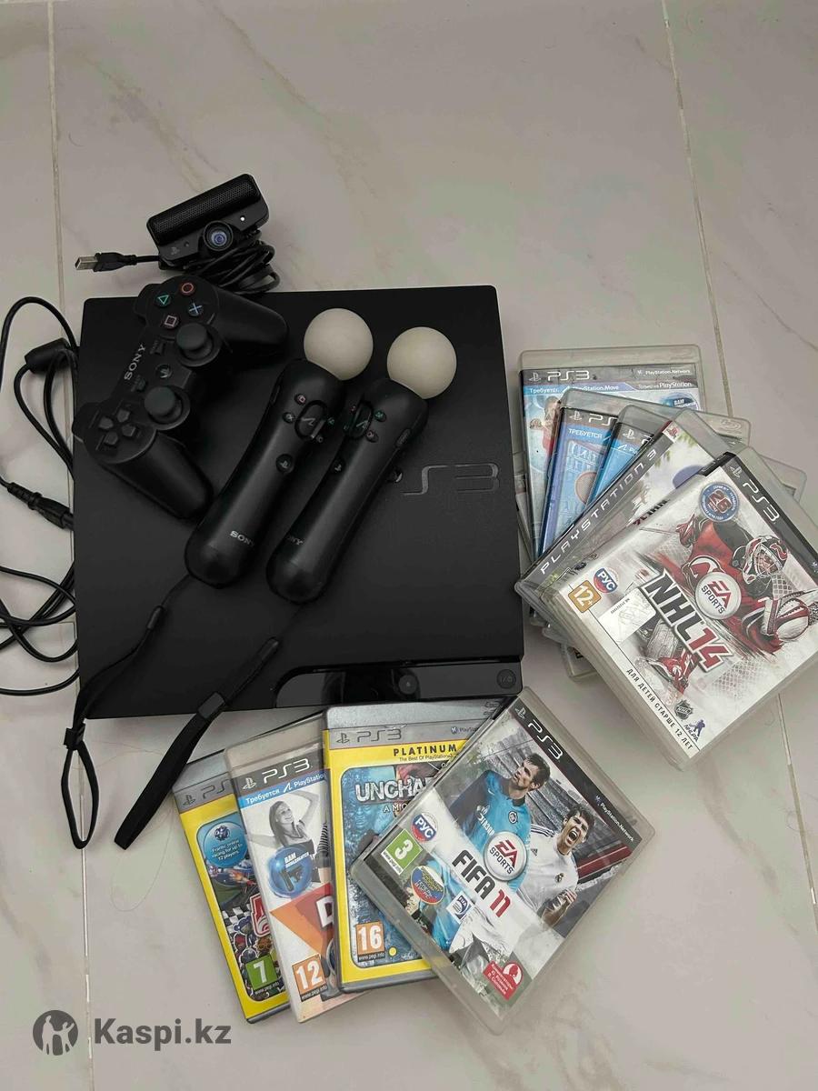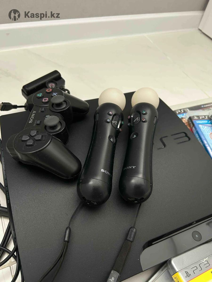 PlayStation 3 в отличном состоянии, прошитый, внутри 10 игр + 9 игр на дисках. Два мува, камера и геймпад рабочие.