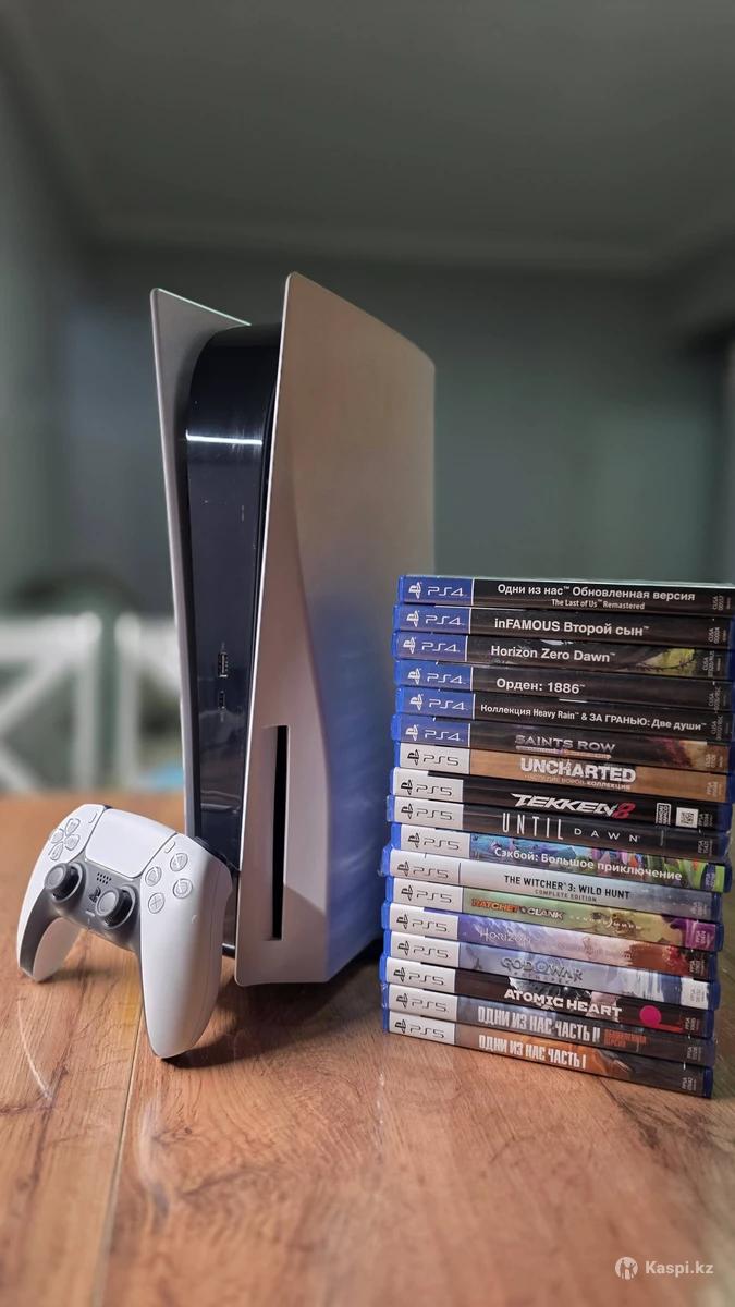 Продам PS5 с большой подборкой игр (есть игры и для PS5, и для PS4). Все в идеальном состоянии — никаких повреждений. Полный комплект стоил почти 700 000