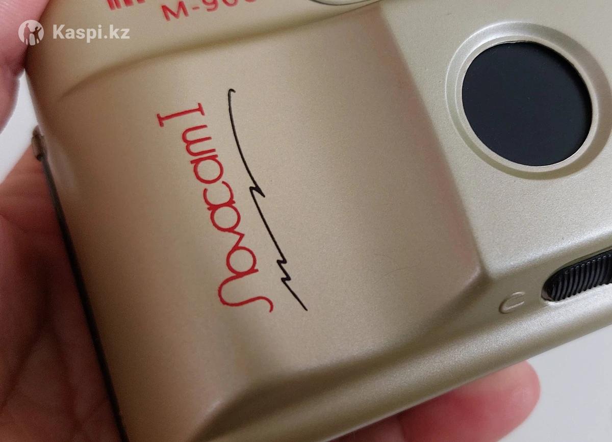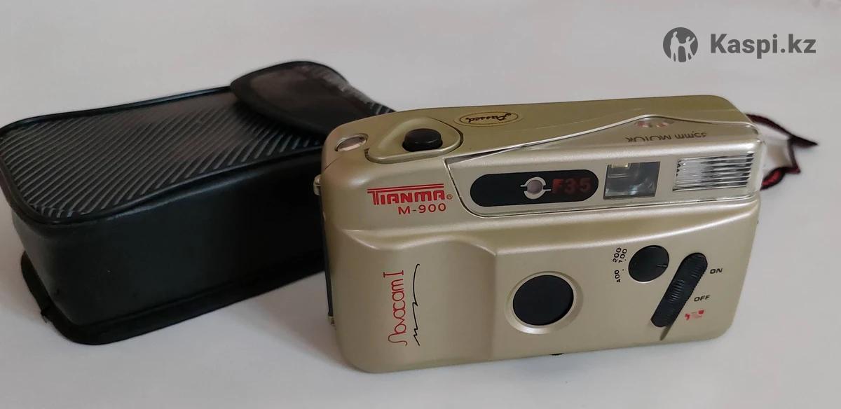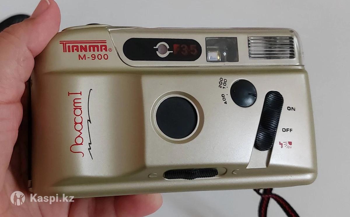 На изображении представлен винтажный пленочный фотоаппарат Toma M-900 Novacam I. Это компактная автоматическая камера с фиксированным фокусом и объективом \(35text\ мм\) с диафрагмой \(f/3.5\). Камера имеет встроенную вспышку с возможностью принудительного включения и выключения. Поддерживает использование пленки с чувствительностью ISO 100, 200 и 400, переключение между которыми осуществляется вручную. Питание устройства осуществляется от двух батареек типа АА, а также предусмотрена функция автоматической перемотки пленки. Работает. Ностальгия Есть чехол
