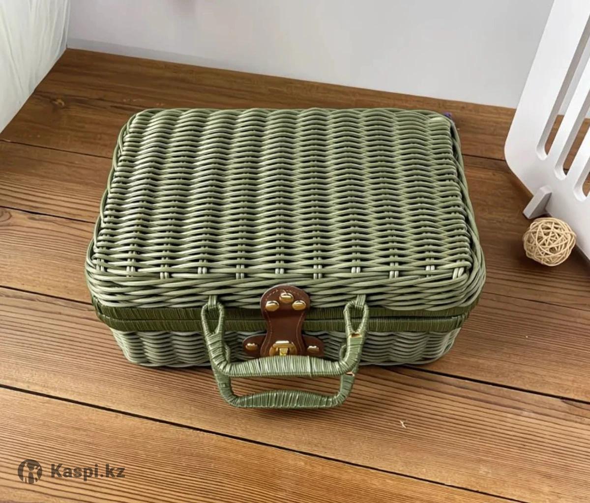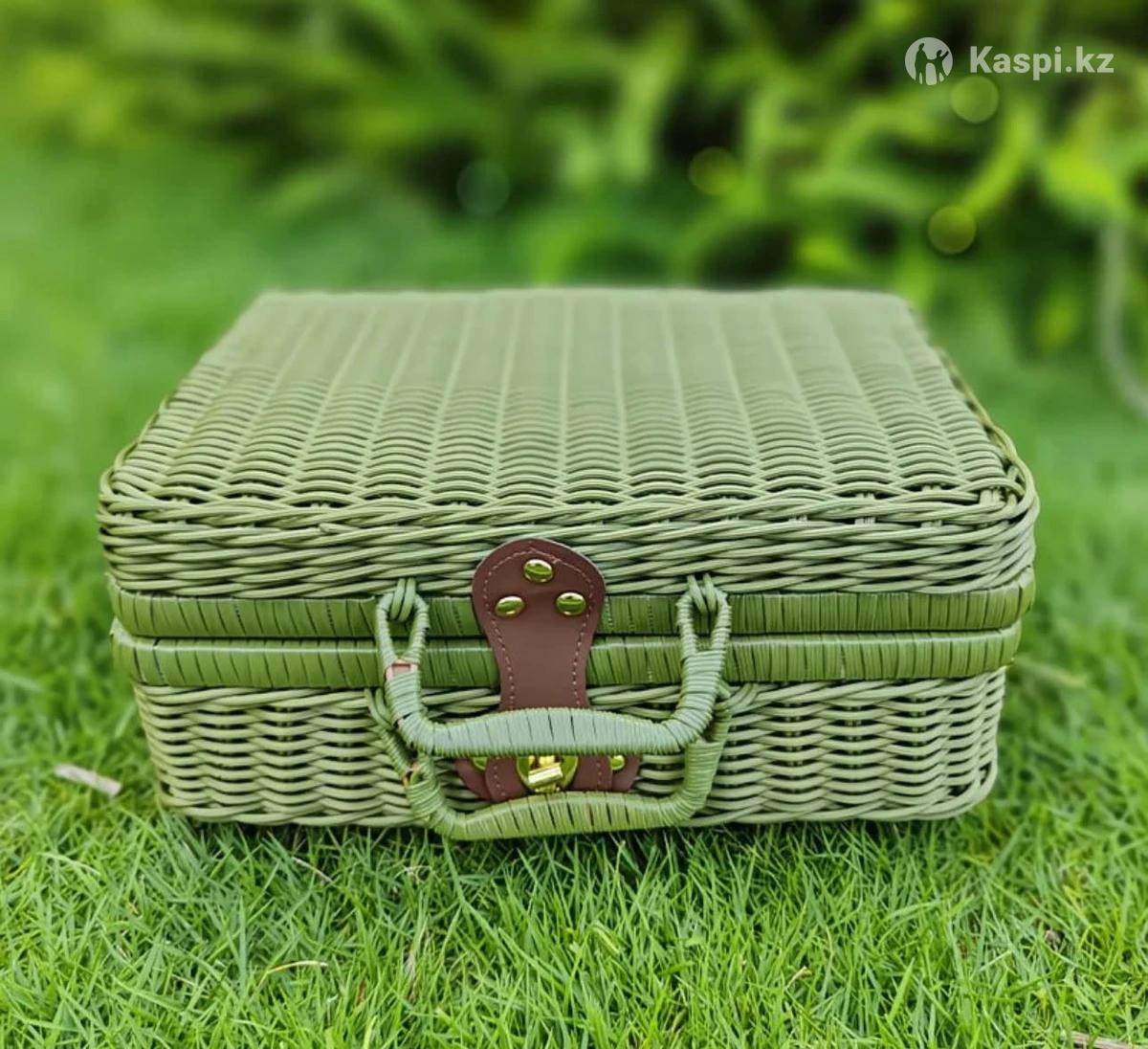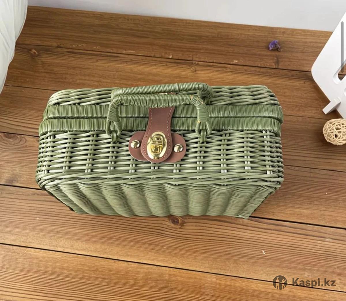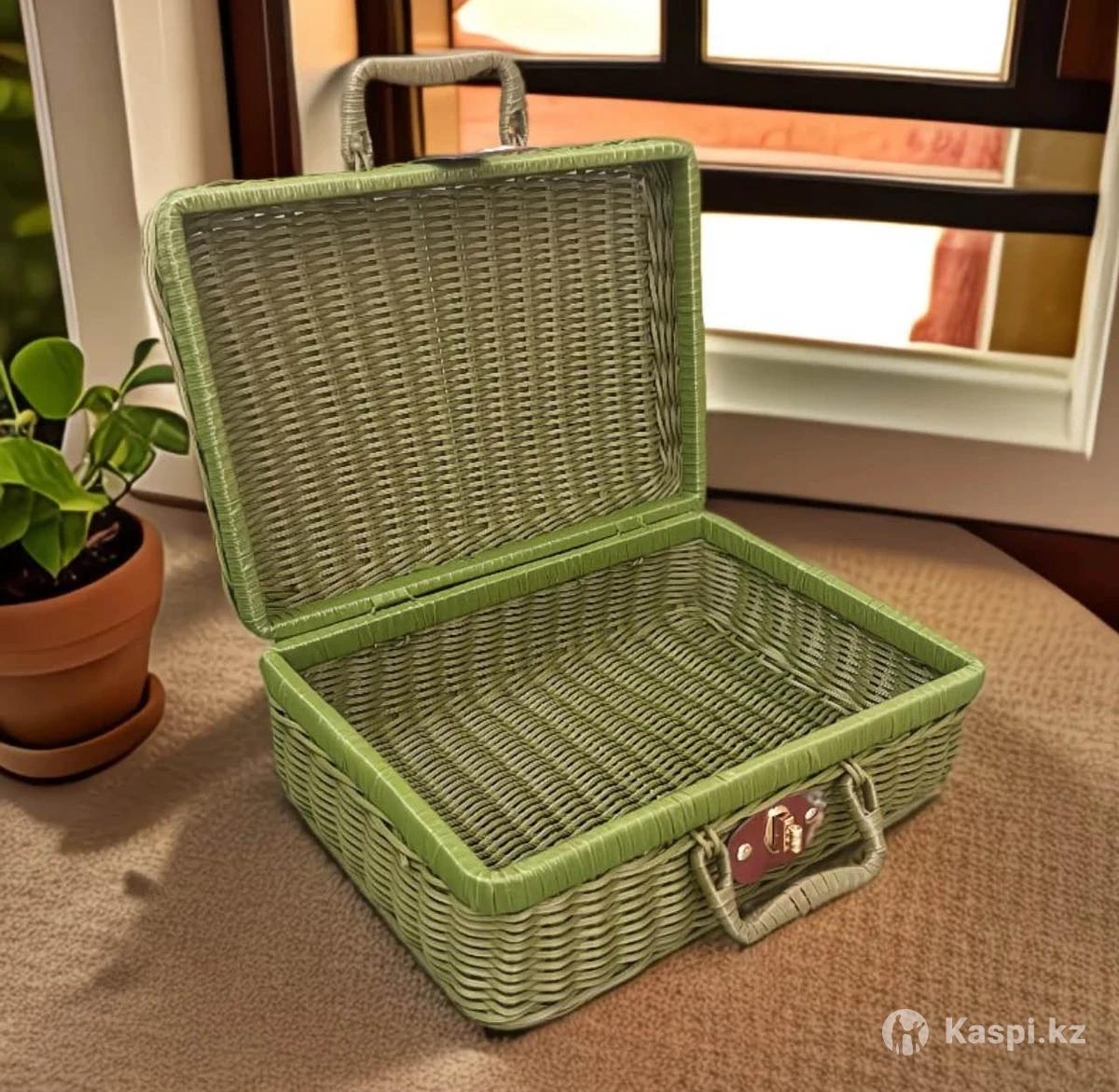 Плетеные чемоданчики Бирюзовый с подкладом Размер 26 см х 18 см х 11 см Цена: 7 500 тенге Фисташковый без подклада Размер 30 см х 21 см х 12,5 см Цена: 7 500 тенге