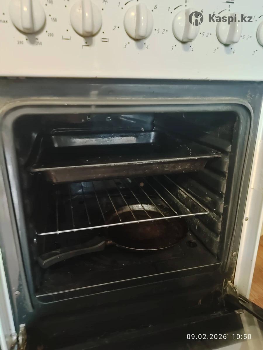 Плита кухонная с духовкой ,есть противень и вертел для приготовления куры гриль и прочего мяса. Конфорки 4 все рабочие.