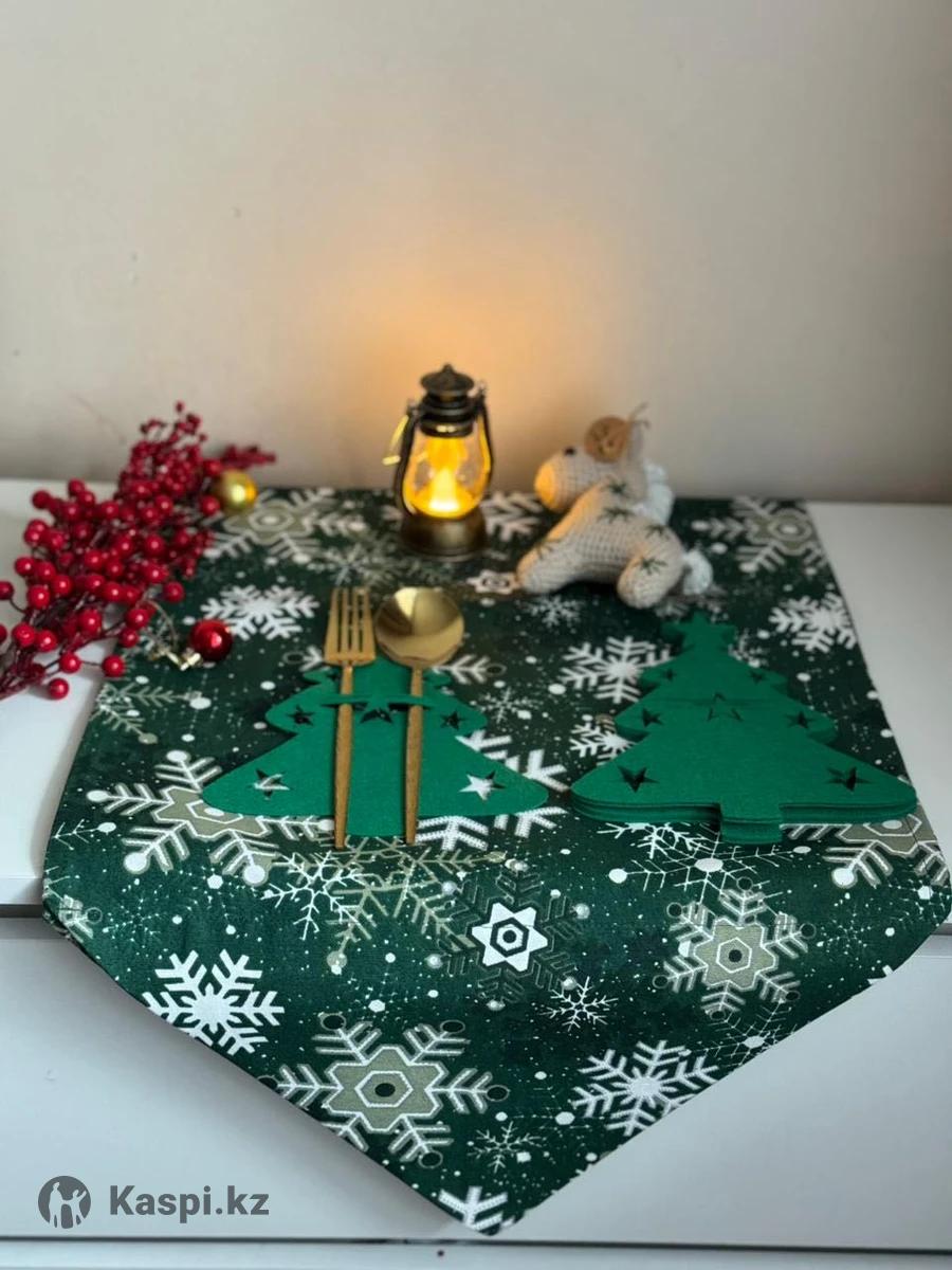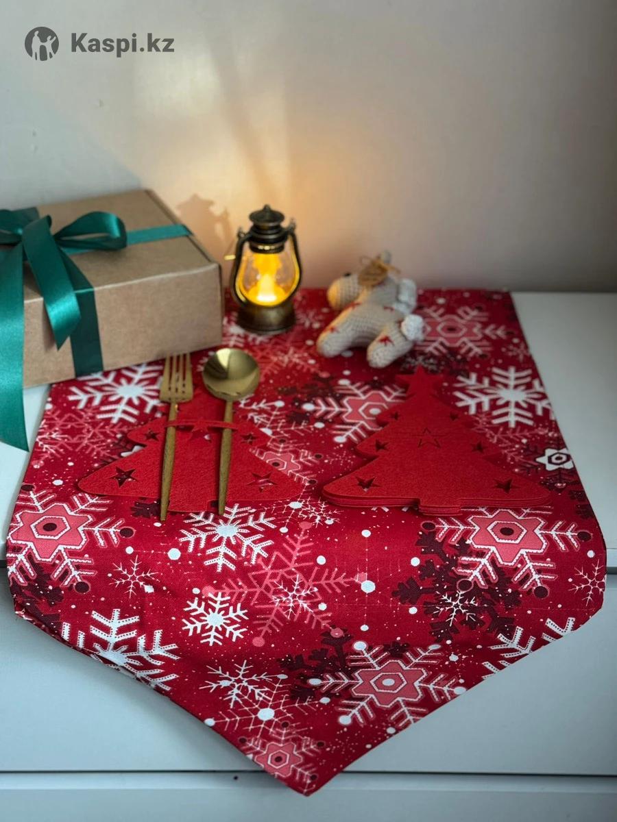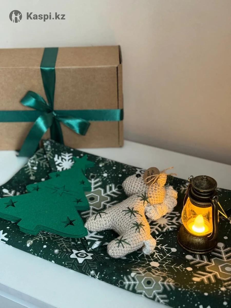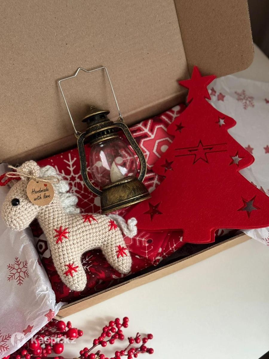 Подарочные наборы на Новый год в них входит дорожка на стол 145см,держатели для приборов 6 шт,фонарик и символ года лошадка ручной работы