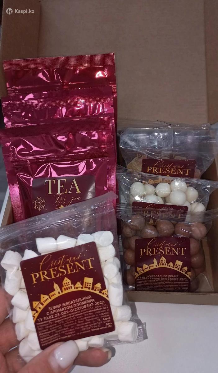 Подарочный набор PRESENT✨🙏🏻 В набор входит: Чай ( бодрящий витамин, чай с чабрецом, зеленый чай ГУ ШУ ) Сахарное Драже ( шоколадное, розовые мечты, со ароматом мохито ) 🤍 Монпансье Зефир с ароматом пломбира 🍦