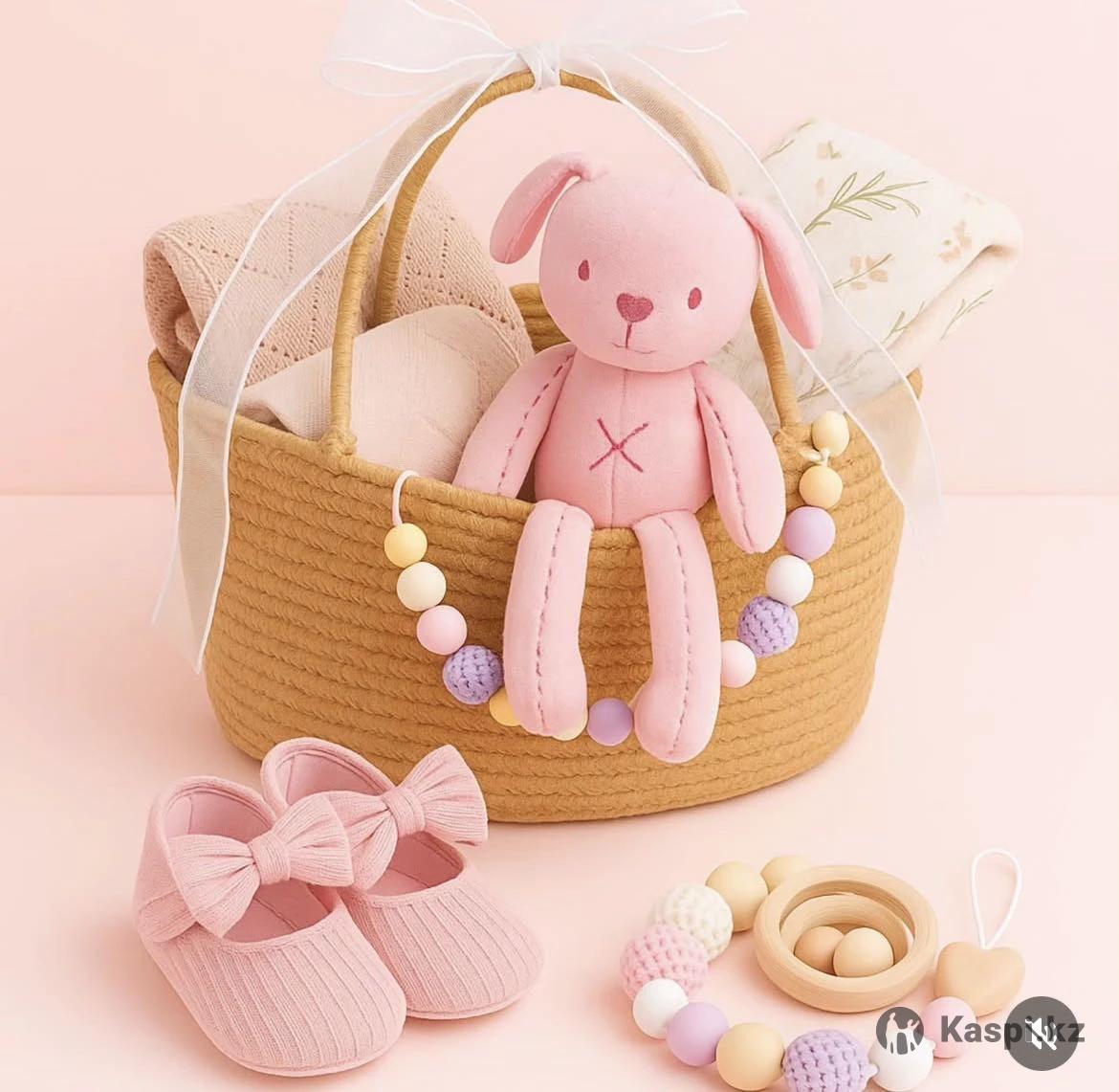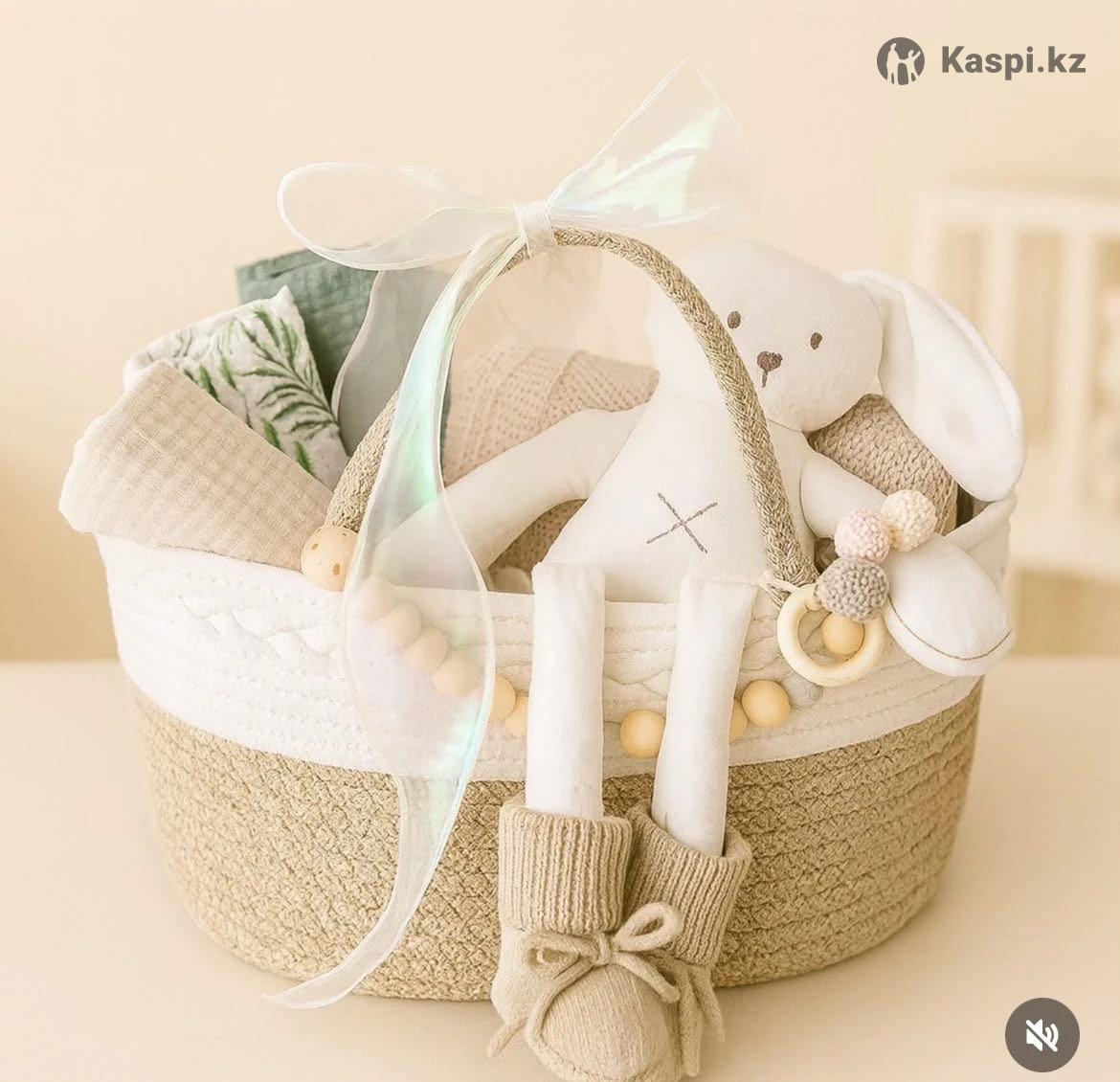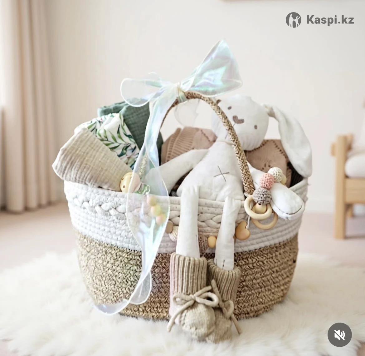 Набор подарочный для новорожденных "Bunny BOY & Bunny GIRL" Набор высококачественный (премиум качество), только корзина стоит 37.000 тг. Распродажа в связи с закрытием онлайн магазина, менее 10 корзин осталось наполненными подарками к выписке. Продавали их по 80.000 тенге. Кому подойдет • Идеальный подарок на выписку, крестины, baby shower или первый праздник малыша. V Практичный набор для ежедневного ухода и уюта Подарочный набор станет идеальным презентом для новорожденного мальчика и его мамы. В комплект входят только качественные и безопасные изделия из натуральных материалов, созданные с заботой о комфорте ребенка. В корзине вы найдете: -Мягкая игрушка-зайка - станет первым другом малыша, безопасна для объятий и сна. -Трикотажные пинетки - теплые, дышащие и очень удобные для первых месяцев жизни. -Муслиновые пеленки и одеяло - нежные к коже ребенка, отлично пропускают воздух, подходят для пеленания, укрывания и даже как накидка для кормления. -Эко-держатель/грызунок - выполнен из натурального дерева и безопасных бусин, помогает развитию моторики. -Эстетичная корзинка-органайзер - стильное и функциональное решение для хранения детских мелочей, которое украсит интерьер. Преимущества Только натуральные материалы (хлопок, муслин, дерево). Абсолютно безопасно для новорожденных. Практичный и стильный дизайн. Готовый подарок, который приятно вручить.
