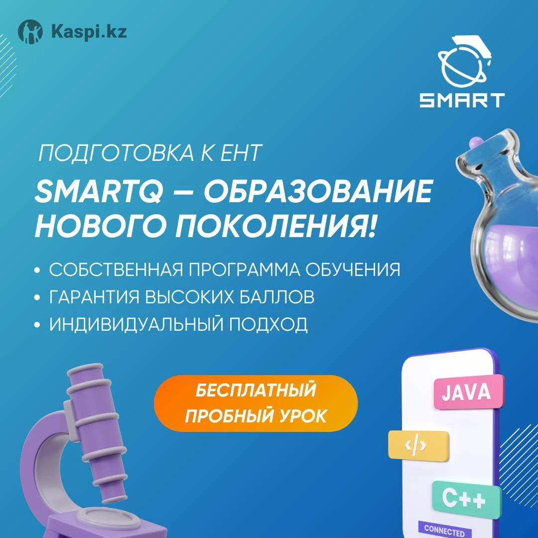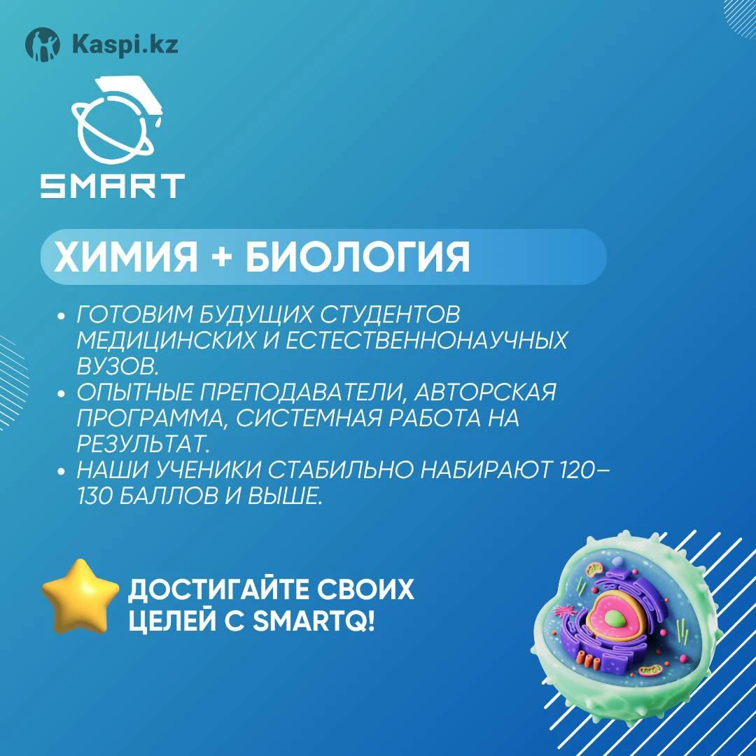 Подготовься к ЕНТ с SmartQ — школой, где знания превращаются в результат. Наши программы созданы для поступающих в медицинские, инженерные и IT-вузы. Готовим по ключевым направлениям: 🔹 Химия + Биология — для будущих врачей и биохимиков 🔹 Физика + Математика — для инженеров, программистов, технарей 📘 Что даем студентам: • Подробное объяснение теории по каждой теме • Решение типовых и сложных тестов ЕНТ • Анализ ошибок и постоянный контроль • Онлайн • Поддержка преподавателей и четкий план подготовки 🎯 Наши ученики стабильно набирают 120–130+ баллов 🎓 Реальные результаты. Пробный урок — бесплатно. 📞 Пиши нам и начинай готовиться к гранту уже сегодня! SmartQ — образование нового поколения.
