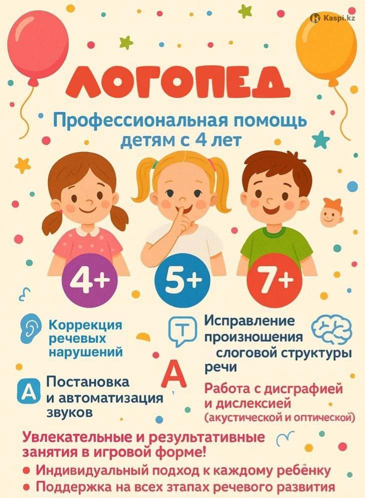 Ваш ребёнок пойдёт в первый класс с удовольствием! 🎒 Помогу будущему первокласснику чувствовать себя уверенно у доски. Никаких слез над прописями — только понятные и интересные занятия в игровой форме. Чтение и развитие речи. Основы математики и логика. Подготовка руки к письму. Психологическая адаптация к школе. Индивидуальный подход к каждому «почемучке». Занятия у вас дома или онлайн.( да и так можно!) Беру деток 4–7 лет. Длительность занятия — [45] минут.( для дошкольников норма 25-30 минут) Работа помесячно [ услуга не разовая,не почасовая] Район: [18] Записывайтесь на пробное занятие!Первое бесплатное занятие-диагностика! Выезд в другой район за ваш счёт! Занятия с логопедом ,оплата за 25-30 минут ( 3000тг.) Диплом имеется! 0 себе: Высокий уровень ответственности в работе. Пунктуальна,без вредных привычек. Пишите ,на звонки не отвечаю!!!