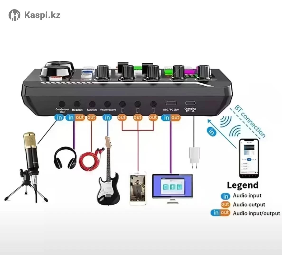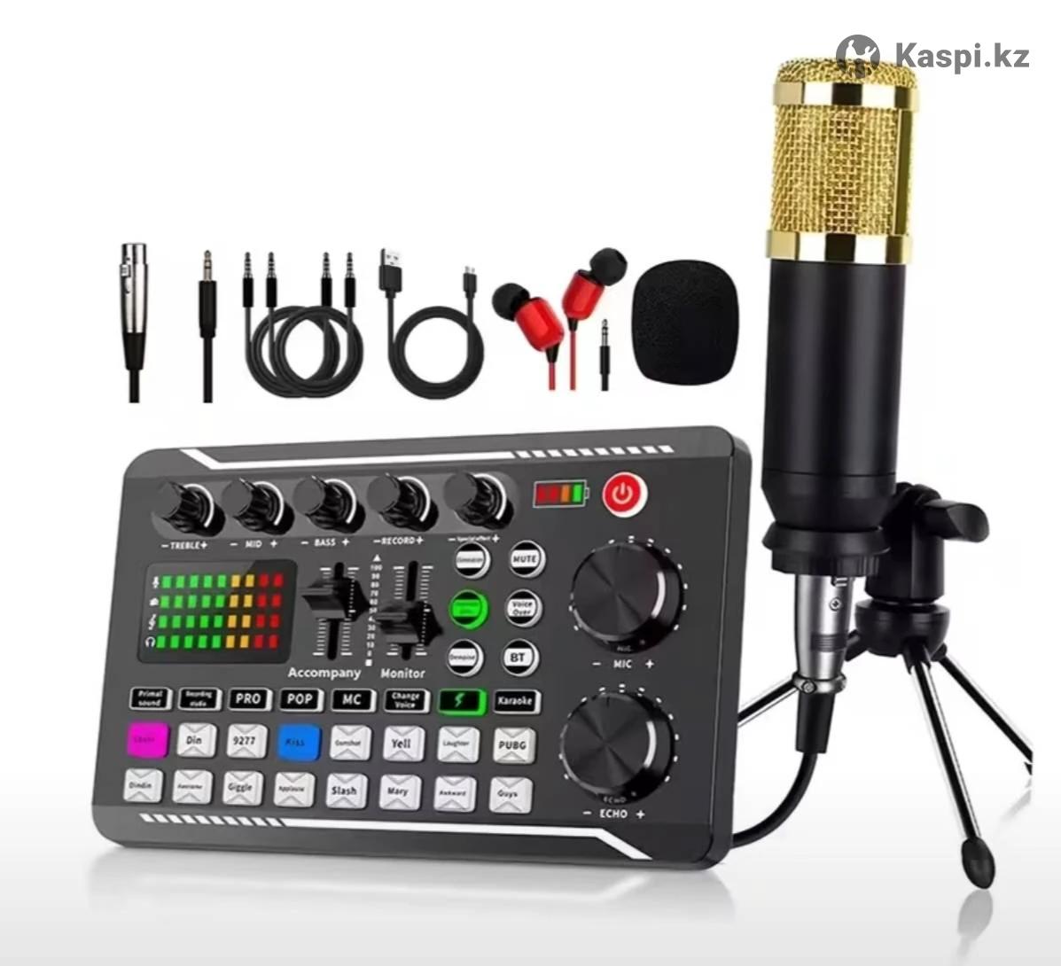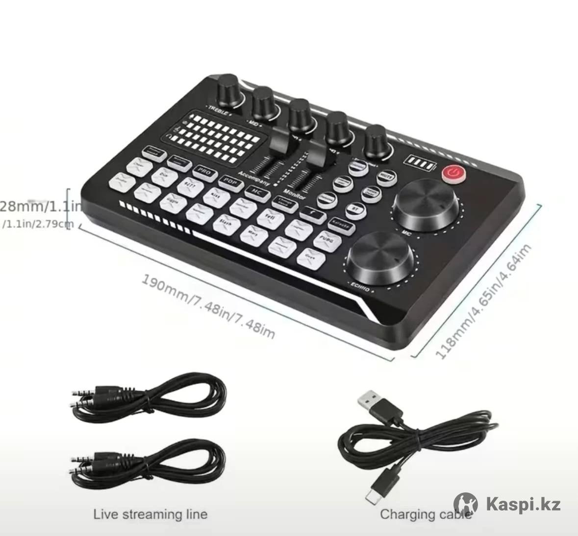 Профессиональный звуковой микшер F998 с аудиоинтерфейсом, DJ-эффектами, комплект: звуковая карта F998, микрофон, основной кабель для микрофона, кабель для наушников, кабель питания, два соединительных кабеля, штатив. Для стриминга, подкастинга, игр — студийное оборудование, совместимо