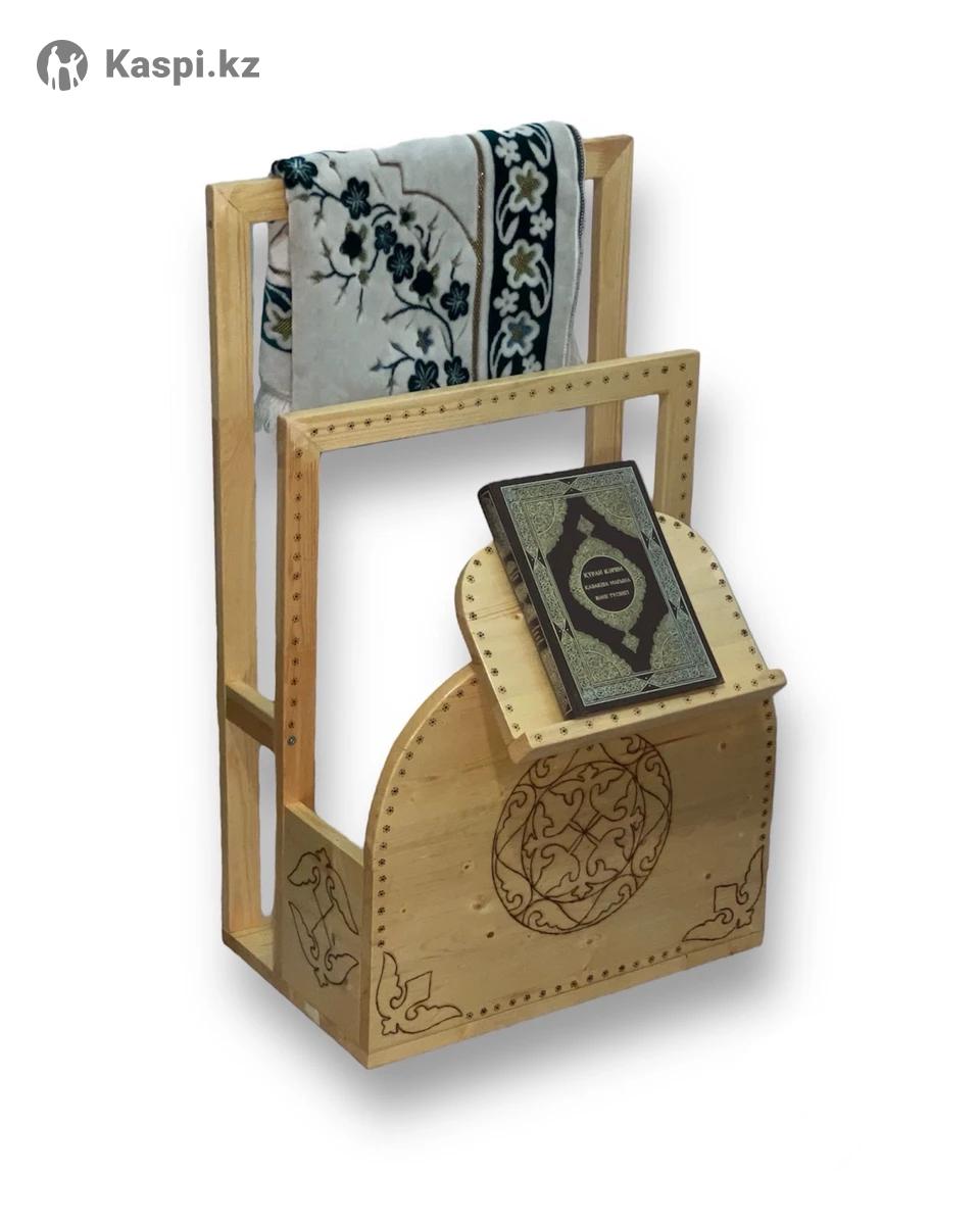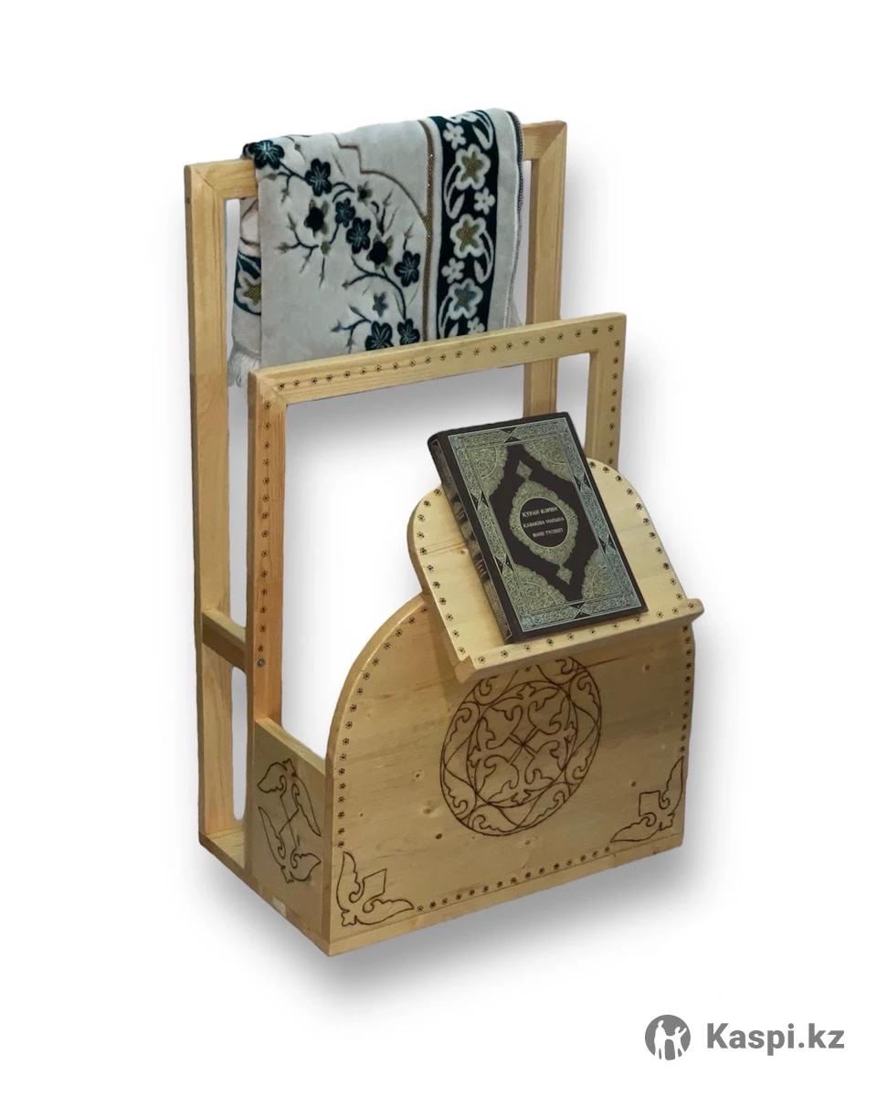 Продам новую подставку из натурального дерева, сделанную вручную. Очень удобная и многофункциональная вещь: можно ставить Коран или обычные книги, вешать жайнамаз или одежду, а сзади есть место для хранения других вещей. Украшена красивыми узорами. Размеры: 82х50х30 см. Торг уместен.