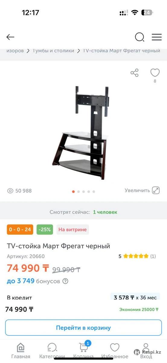 Подставка под телевизор стекло, смотрится очень хорошо , показала в сулпаке за 80 000 т , продам за 30 000срочно