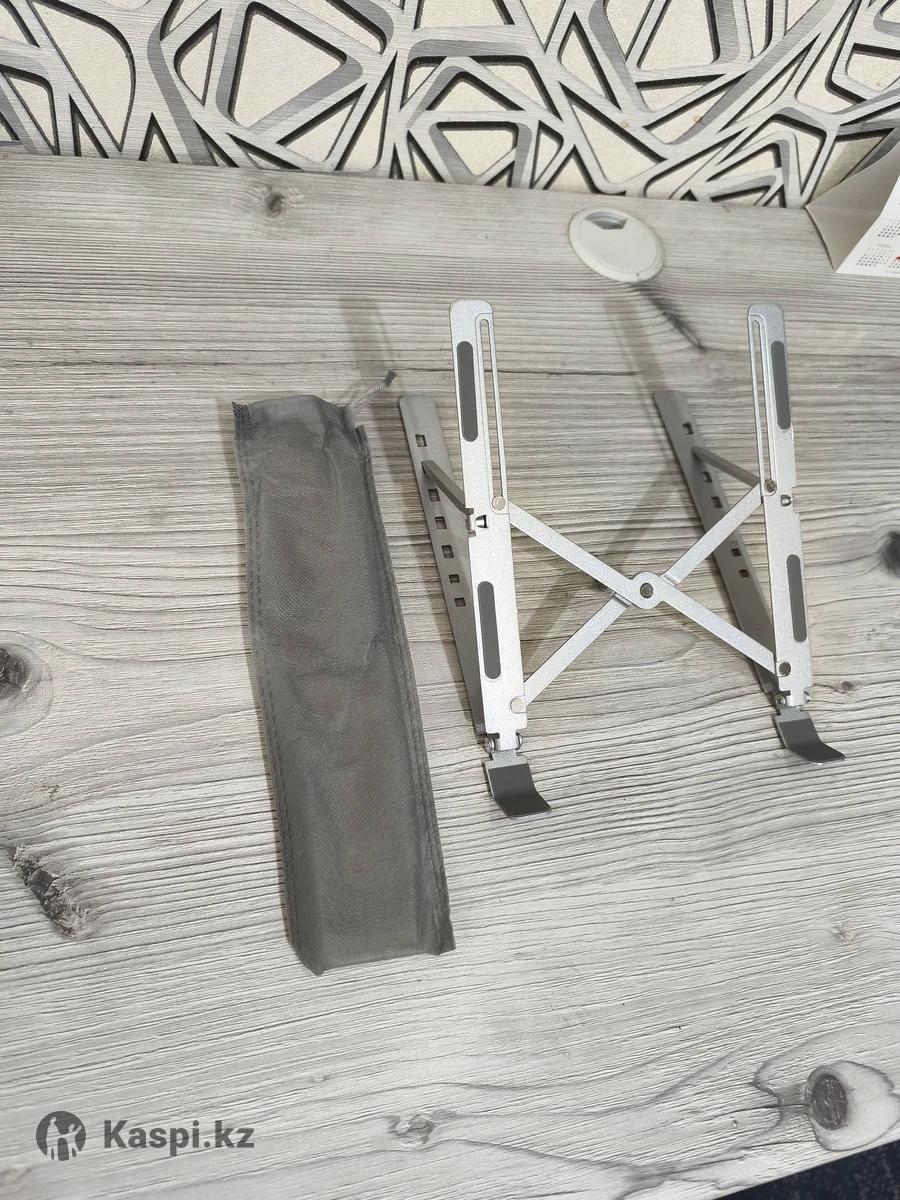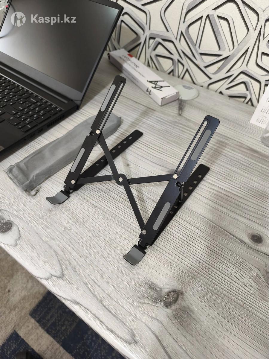 Подставкада для ноутбука, металлическая, складная, удобная, выдерживает вес до 20 кг, рекомендуем для ноутбуков до 18 дюймов экраном. Подставка улушчает охлаждение ноутбука, помогает вам держать осанку засчет наклона, имеет 7 положений от 20-60 градусов.