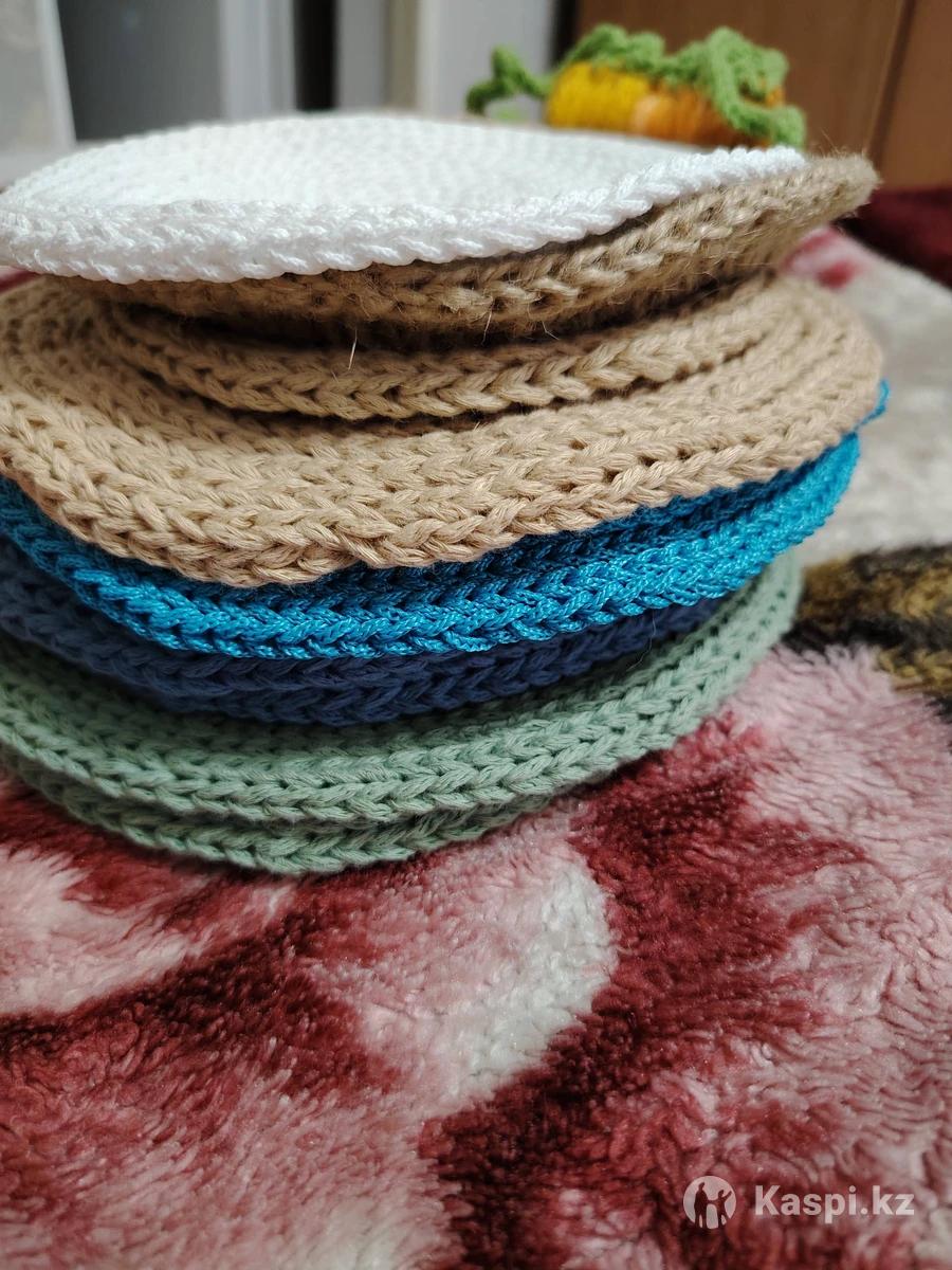 Подставки под горячее ручной работы, выполнены крючком, разные размеры, разные цвета, разные соответственно цены. Материал хлопок и джут.