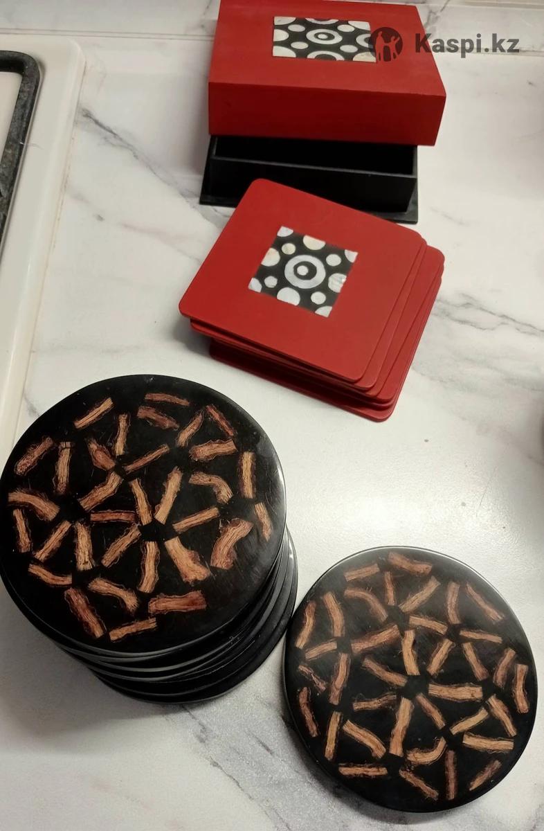 Подставки для кружек, бокалов, стаканов. Размер всех около 10смХ10см. 1) Красные 6шт в своей коробке. 2) Темные 8шт. Натуральный материал. Самовывоз или ваш курьер.