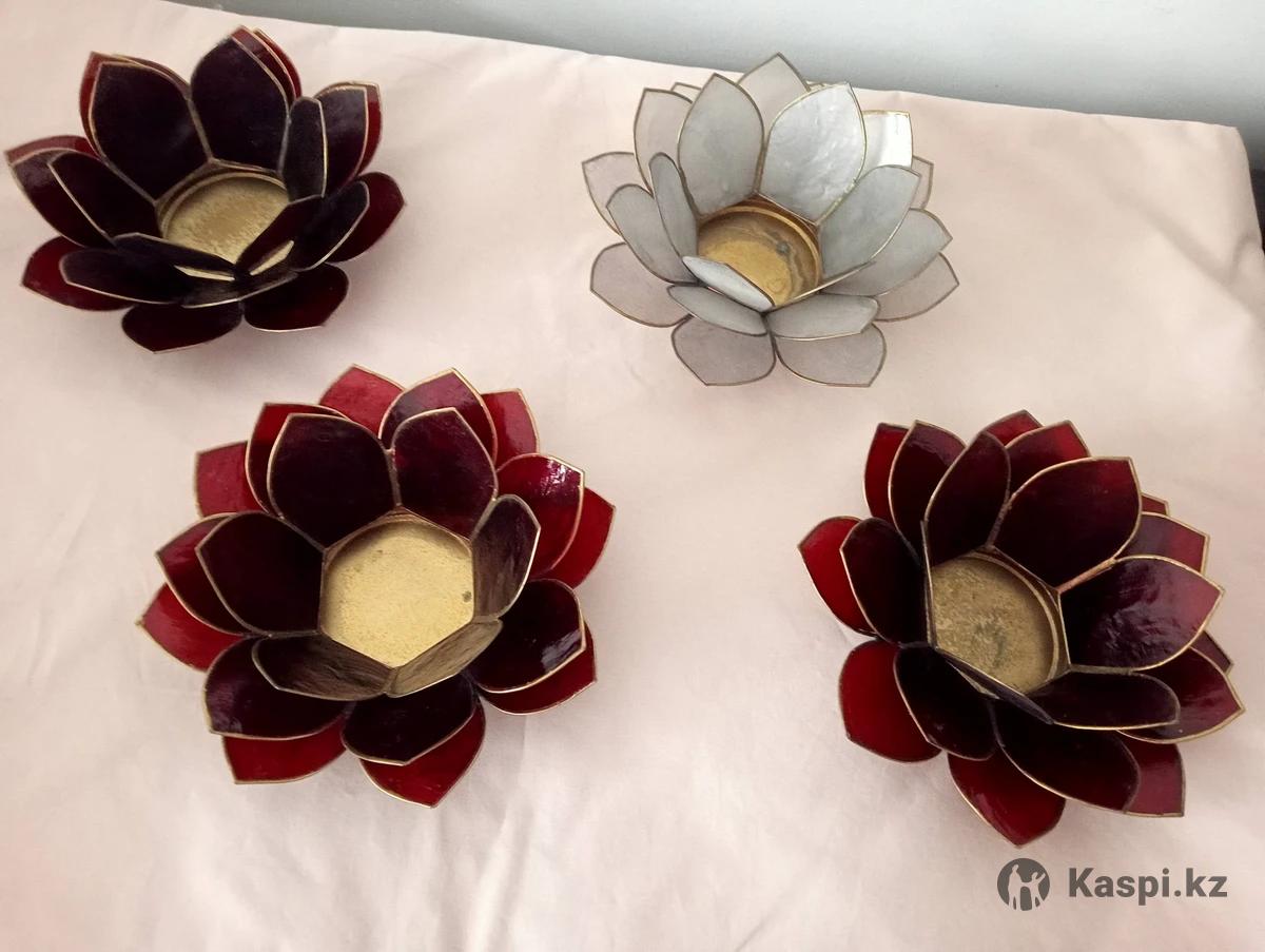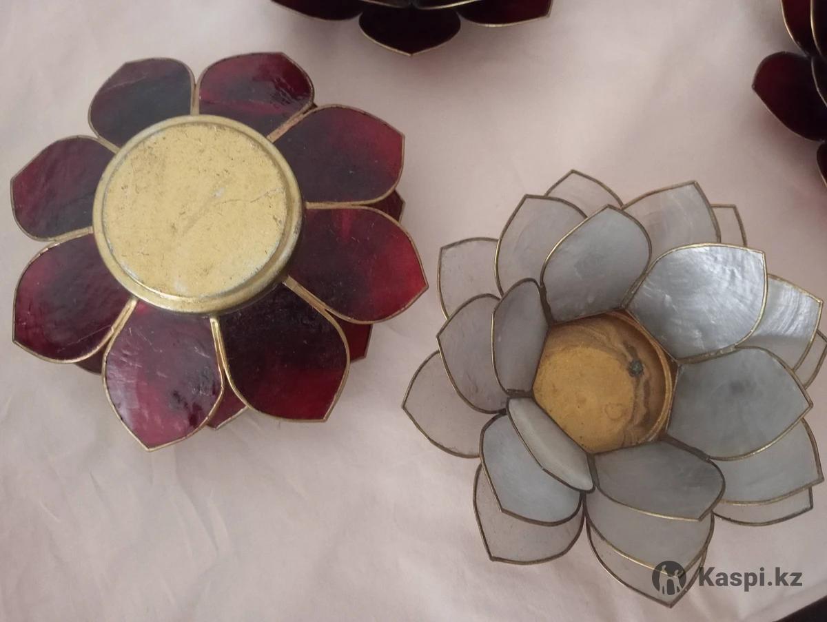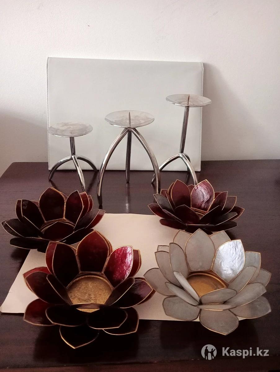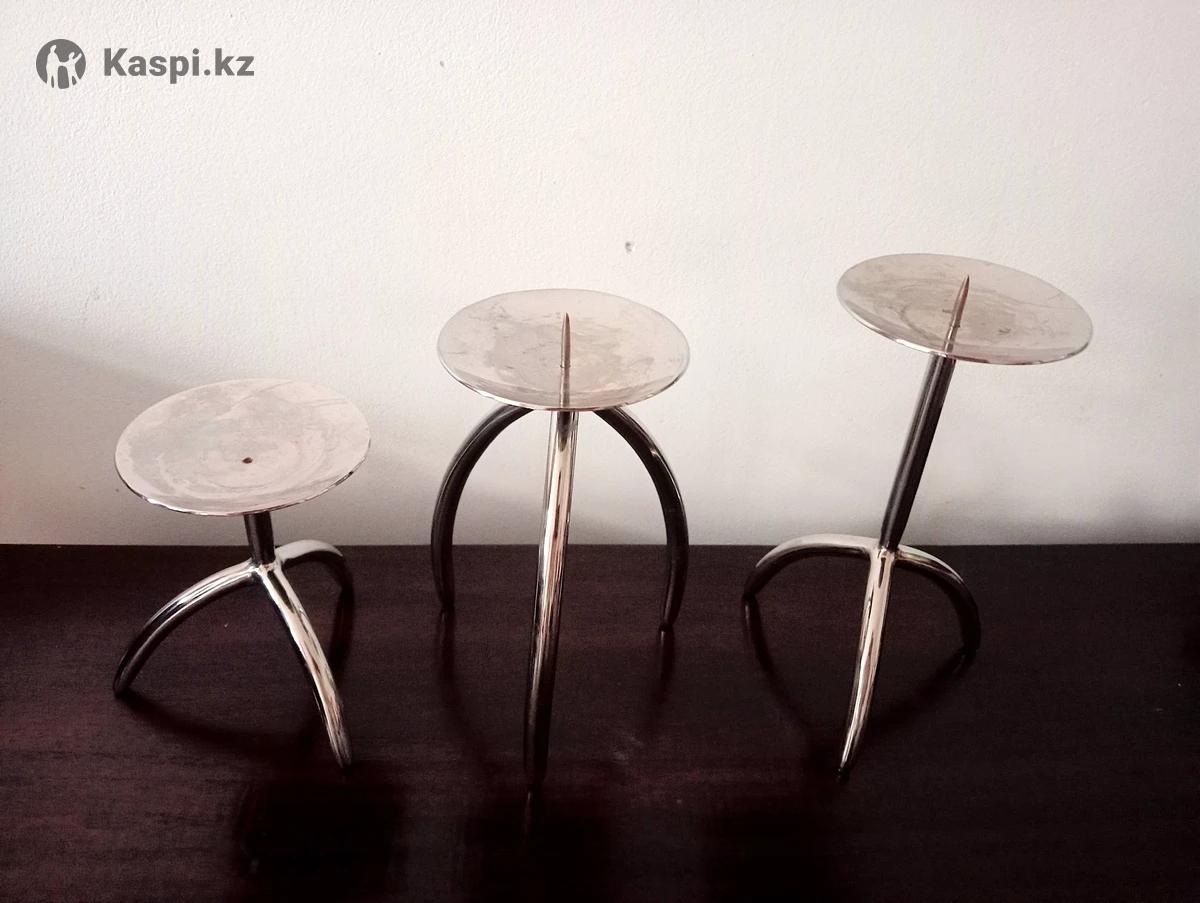 Подсвечники оригинальные, стильные. 1) Три штуки хромированные, в отличном состоянии. Тяжёлый металл качественная нержавеющая сталь цена за 3шт = 15тыс тг. 2) Четыре штуки из натурального перламутра, тонкие, крепкие. В отличном состоянии. 3штуки бордовые и 1 шт серый. Цена за 4 штуки = 10тыс тг. Самовывоз.