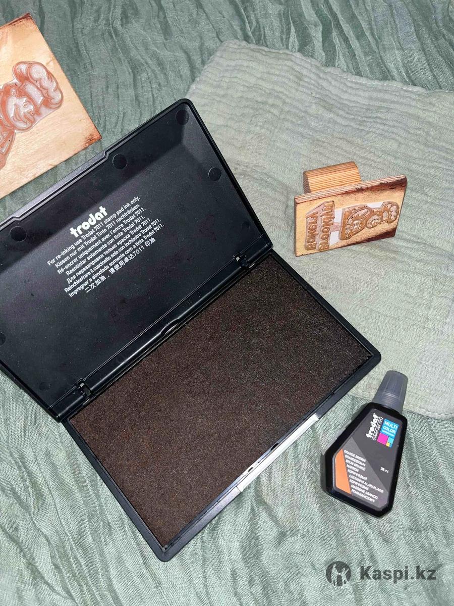 Подушка с краской для печати и коричневая краска