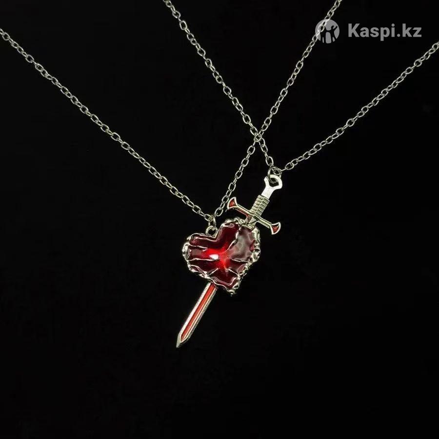 Подвеска «Пронзенное сердце» ❤️🗡️ Кулон в форме сердца с мечом •Эффектный красный камень с блеском •Металлическая цепочка в комплекте •Легкая и комфортная в носке