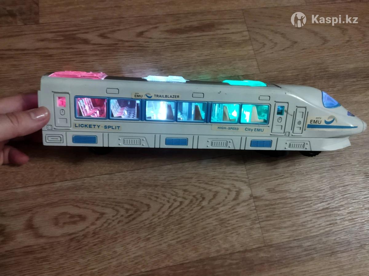 Поезд-электричка на нем батарейках. Пластиковый,со звуком и светом,движется. 30 см