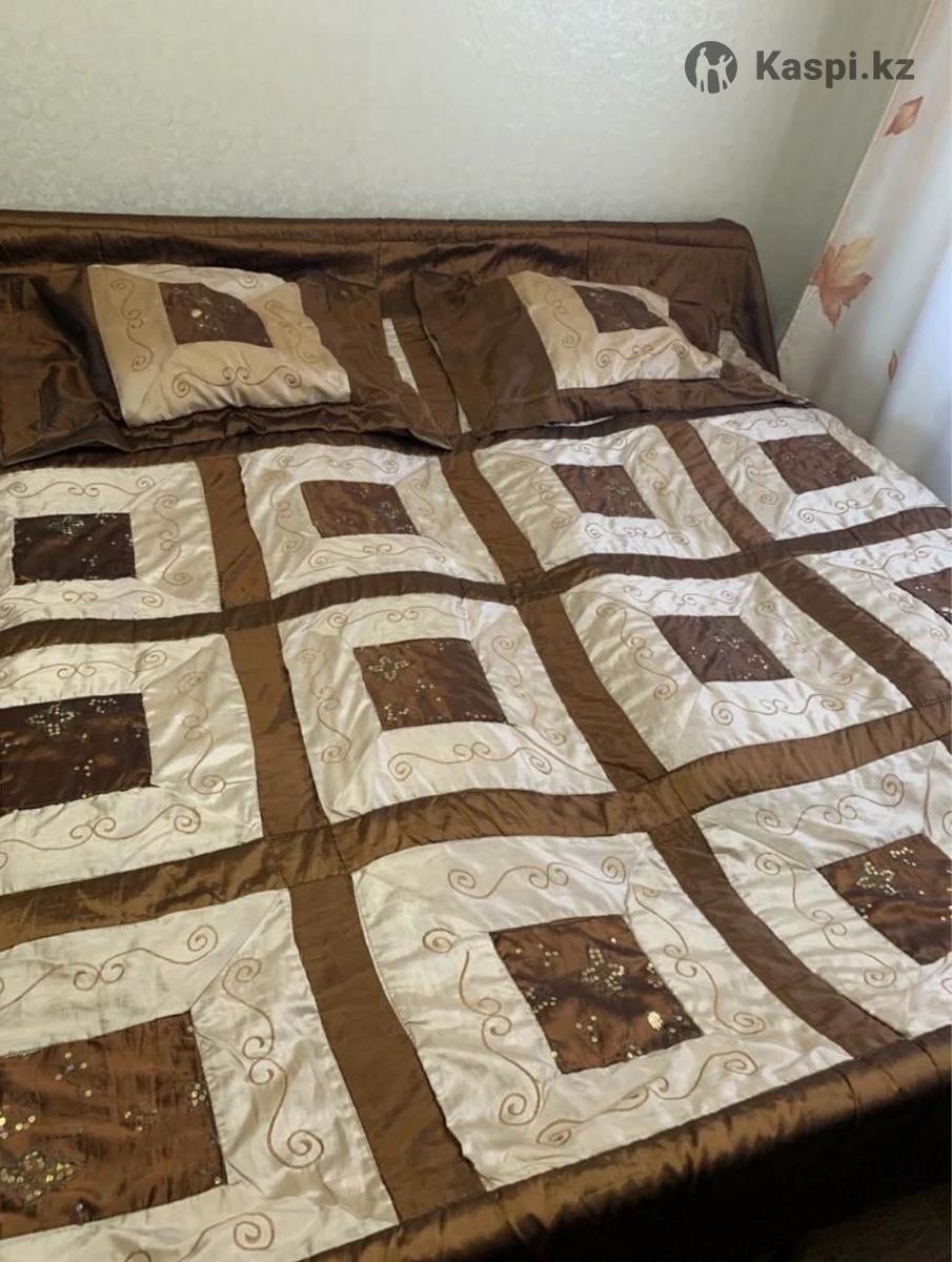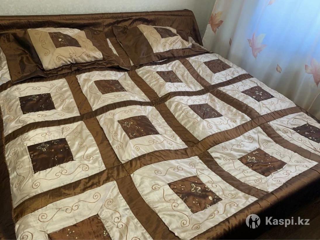 Двухспальное покрывало с двумя наволочками. Качество отличное. Цвет: светло и темно коричневый с красивой вышивкой и пайетками. Размер: 240х240. Наволочки: 50х70.