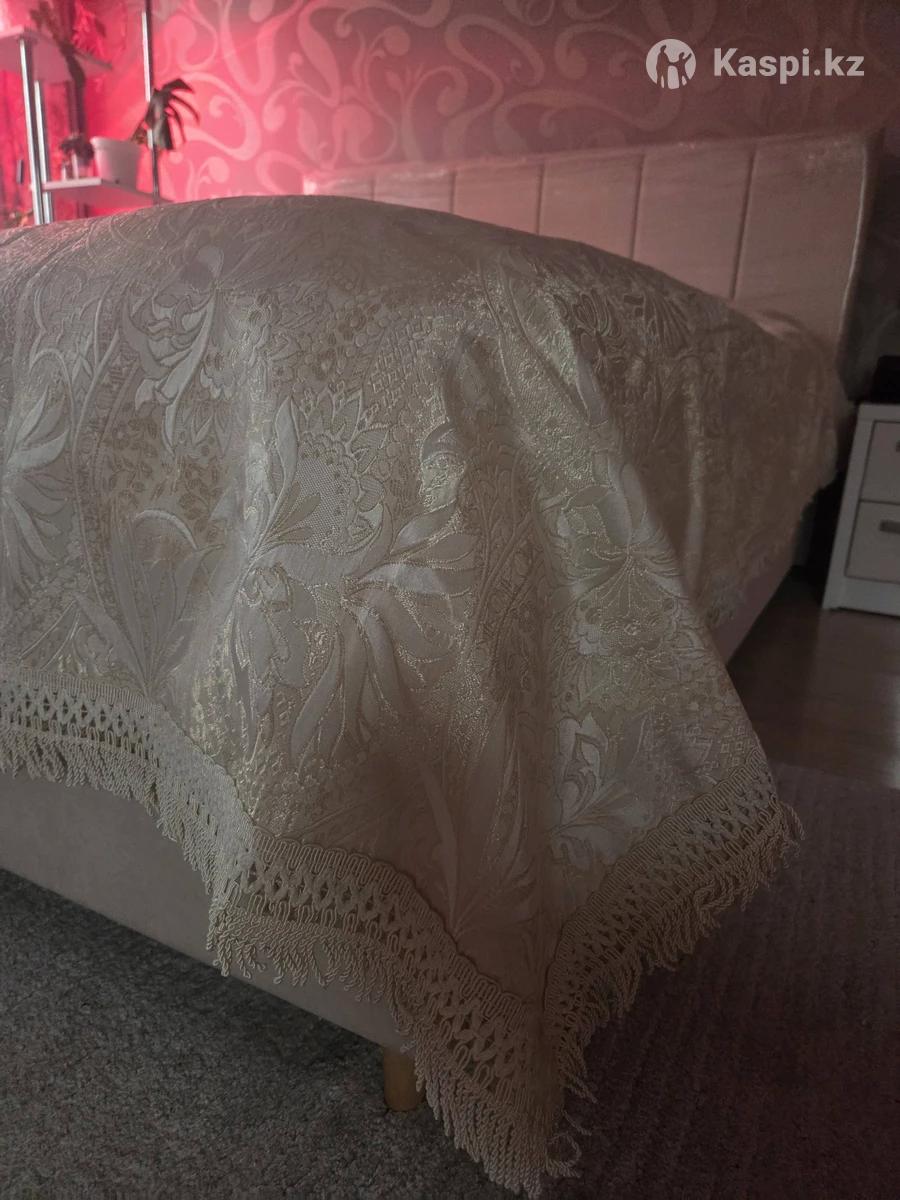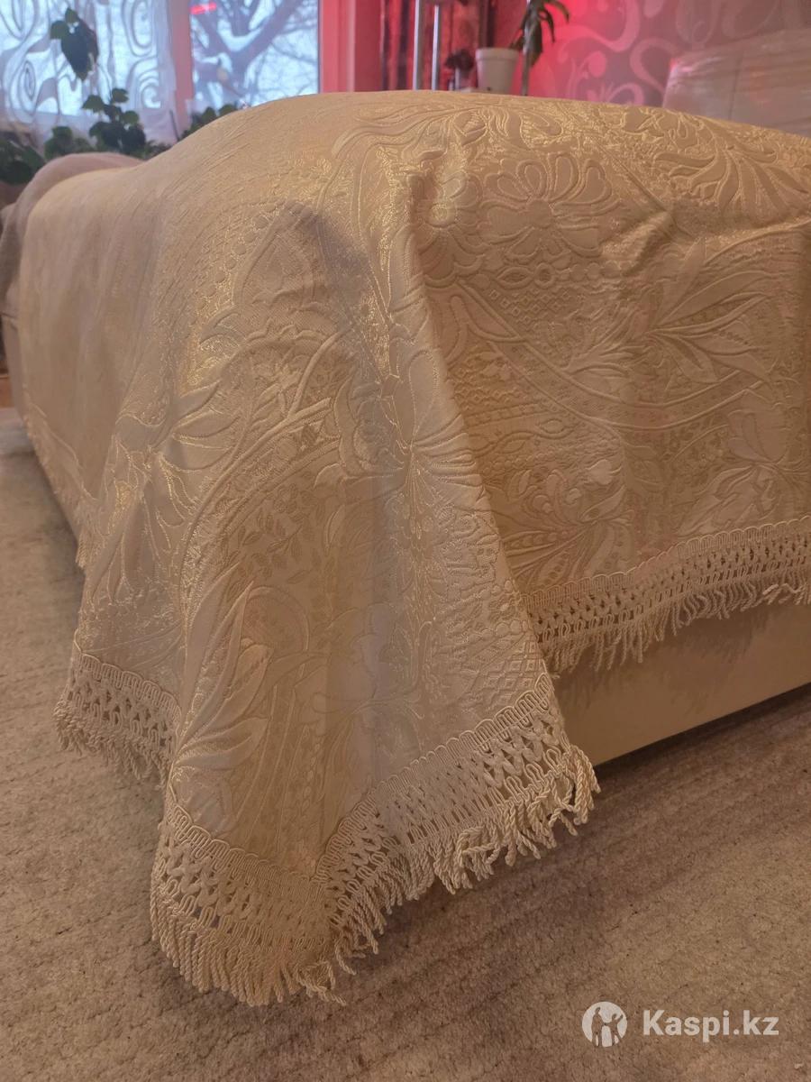 Продам НОВОЕ роскошное большое плотное покрывало примерным размером 230х240 (+/- см 3) на кровать или диван. Цвет слоновой кости с перламутром. Подойдёт под любой интерьер. Выглядит очень дорого. Попросила продать подруга, привезла его из Германии. Единственный минус в упаковке нет вкладыша. Порвался к сожалению. Нахожусь в р-оне авт. Саяхат Могу отправить курьером.