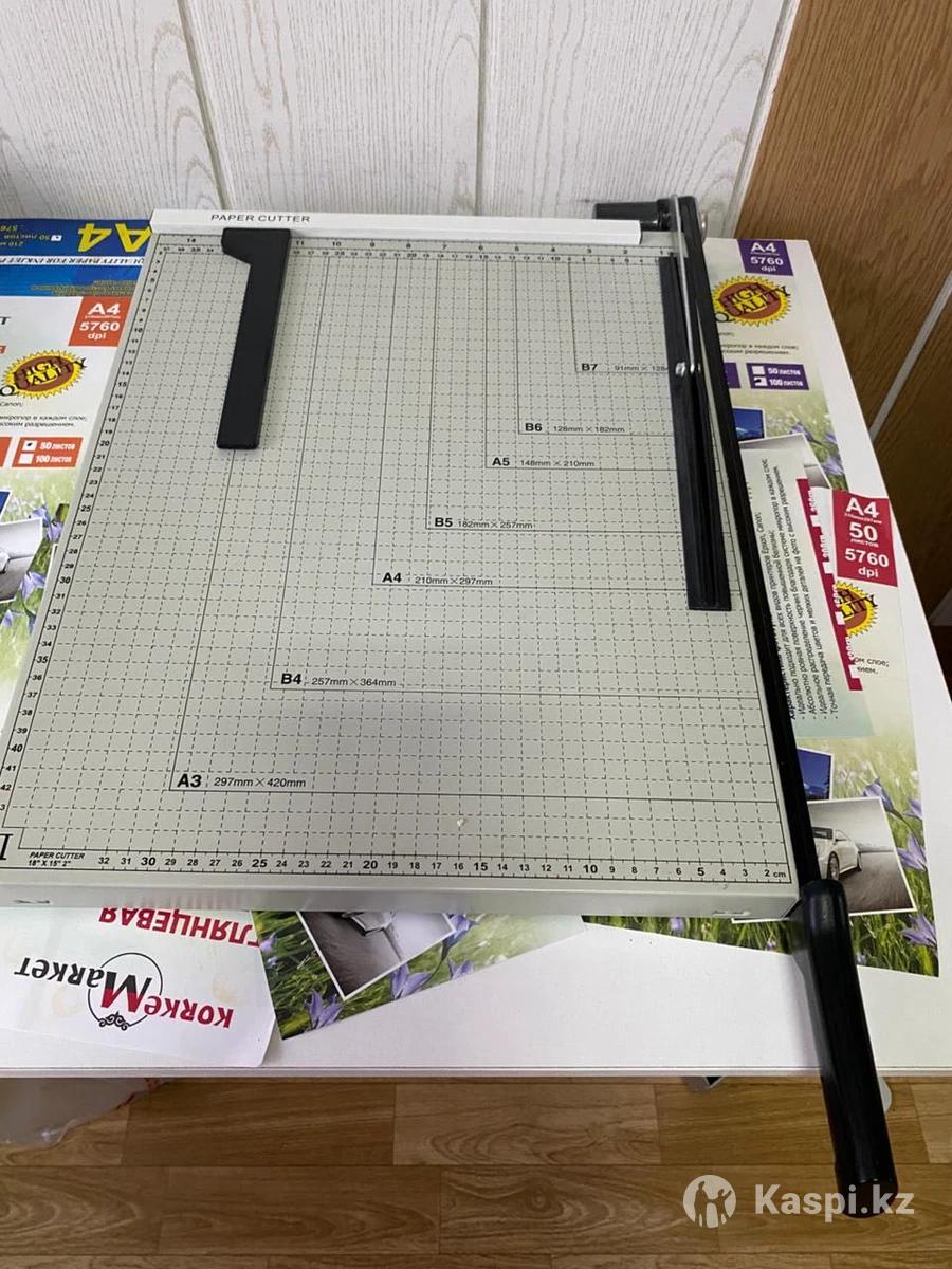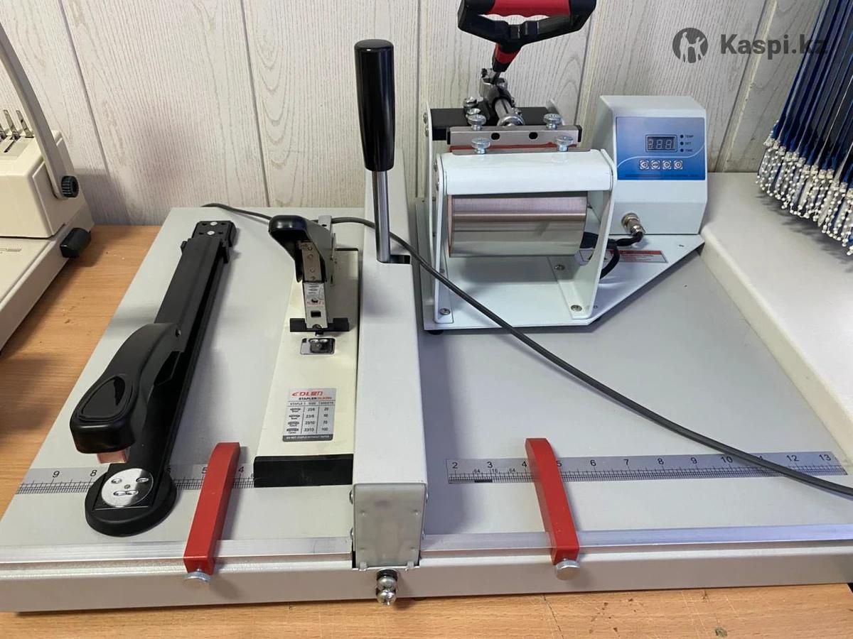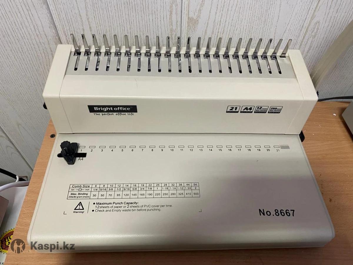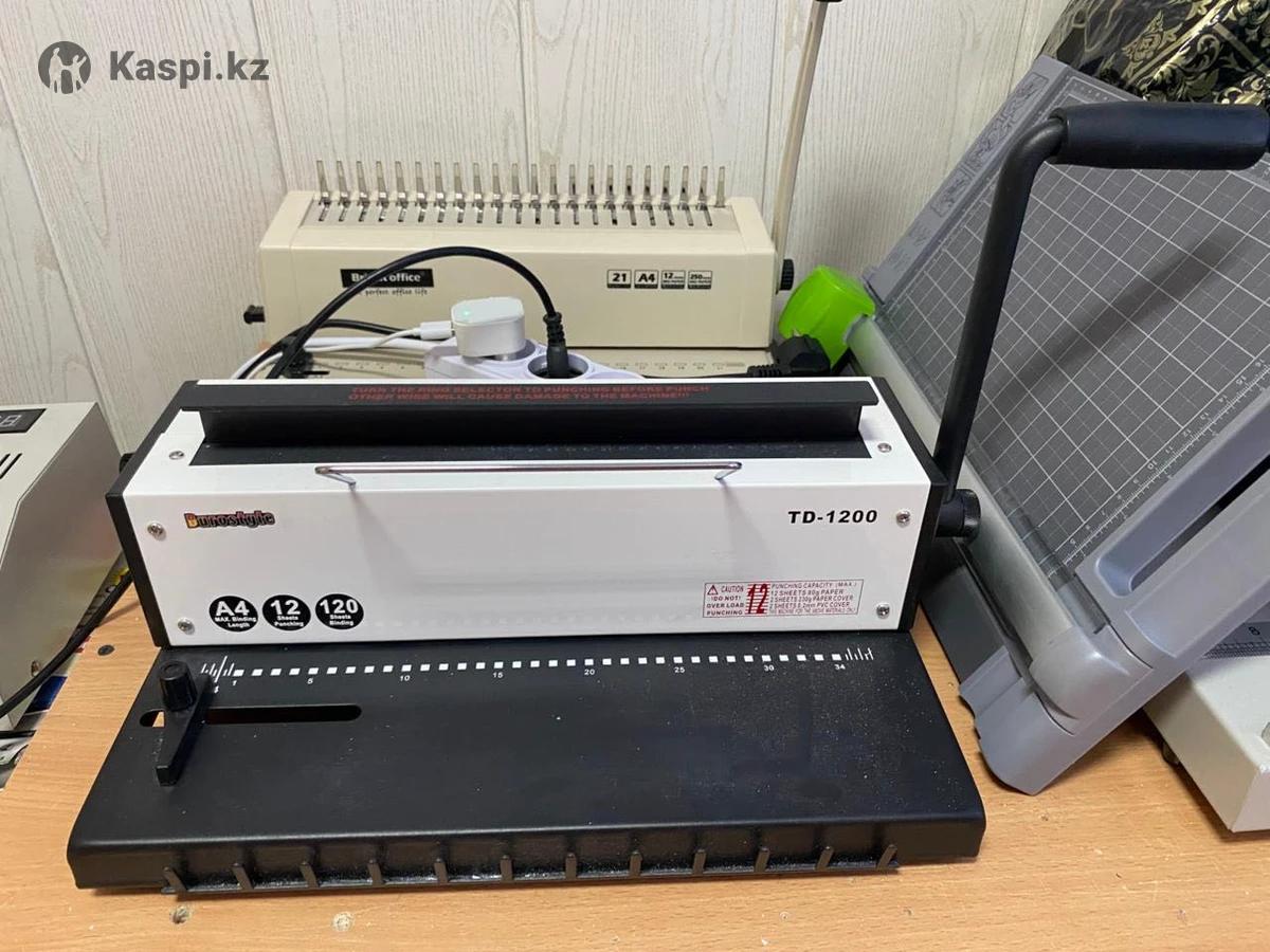 1)Вырубщик визиток 8654 мм с круглыми углами – 30 000 тенге 2)Вентилятор напольный – 10 000 тенге 3)Переплетный аппарат для пластиковых пружин – 20 000 тенге 4)Переплетный аппарат для металлических пружин – 35 000 тенге 5)Биговальный аппарат – 35 000 тенге 6)Степлеры 2 штуки – 14 000 тенге 7)Ламинатор – 20 000 тенге 8)Фигурный роликовый резак – 15 000 тенге 9)Сабельный резак – 13 000 тенге 10)Ручной пресс – 25 000 тенге 11)Лазерный принтер А4 ч/б – 5 000 тенге 12)Струйный принтер L805 А4 – 100 000 тенге 13)Сублимационный принтер P50 – 150 000 тенге 14)МФУ Xerox WorkCentre тенге 15)Сканер А4 – 2 000 тенге 16)Кресло офисное черное – 10 000 тенге 17)Стулья белые лофт 3 штуки – 7 000 тенге 18)Шкаф для документов белый 7035190 см – 25 000 тенге 19)Стеллаж белый – 20 000 тенге 20)Стеллаж белый – 15 000 тенге 21)Столы белые 1006075 см, 4 штуки – 40 000 тенге 22)Стол офисный белый 805074 см – 8 000 тенге 23)Мусорное ведро – 1 000 тенге 24)Термопресс для кружек – 25 000 тенге