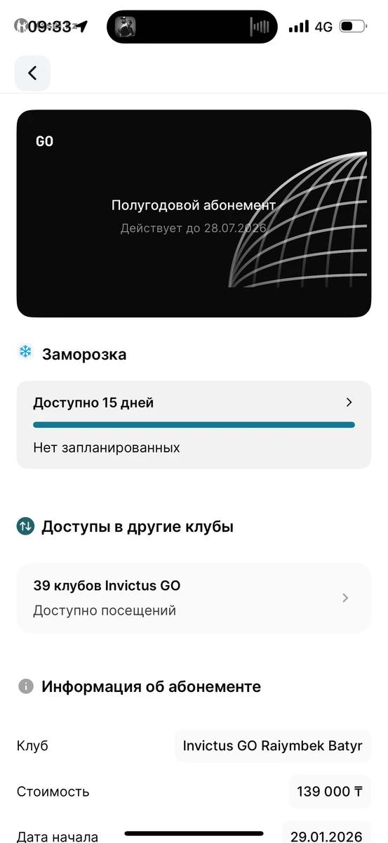 Продаю полугодовой абонемент в инвиктус го по адресу Торекулова 93, блок 14. Продаю в связи с переездом. Рассматриваю обмен с сертификатом в Астане. Есть 15 дней заморозки и 14 посещений в другие клубы. Очень удобное время посещения групповых программ, новые тренажеры.