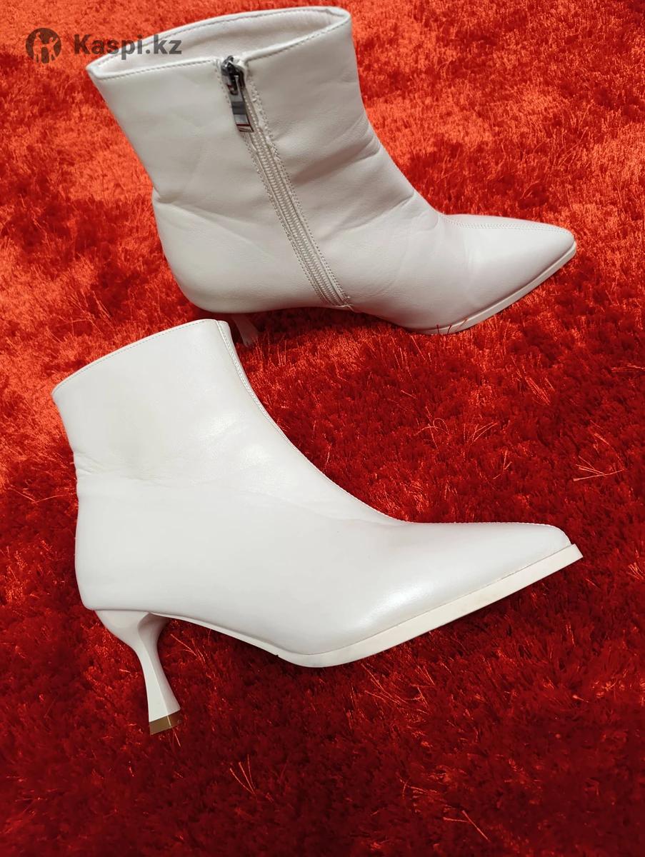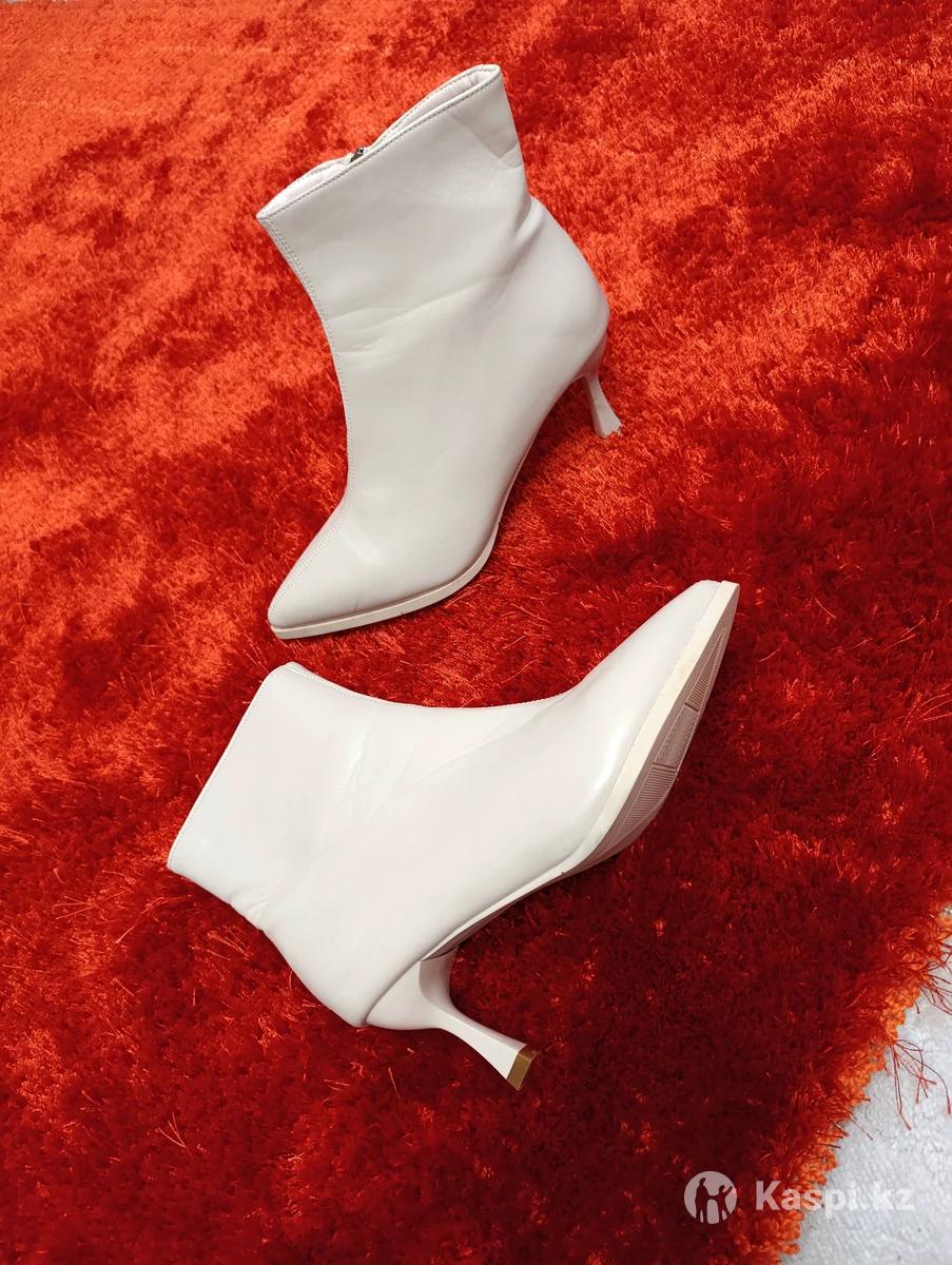 Почти новые, один раз одевались на мероприятие Цвет молочный беж (не белый) Размер 37, демисезонные Внутри флис Мягкие, легкие , очень удобная колодка Устойчивый и не высокий каблук В идеальном состоянии Самовывоз, район Рыскулова-Момышулы
