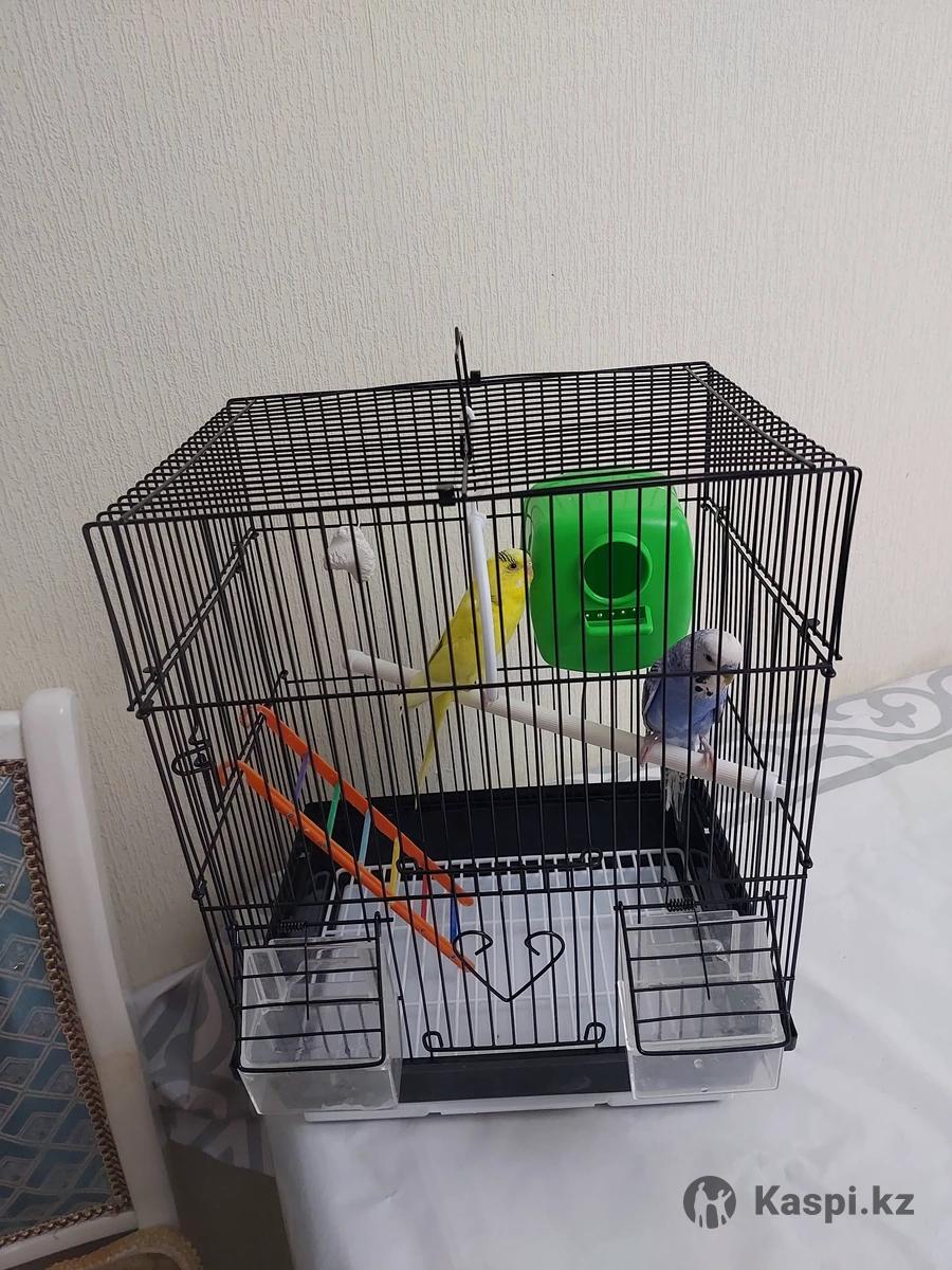 Попугай 2 штук с, клеткой, корм, качелька, минералы, отправка есть через курьер.