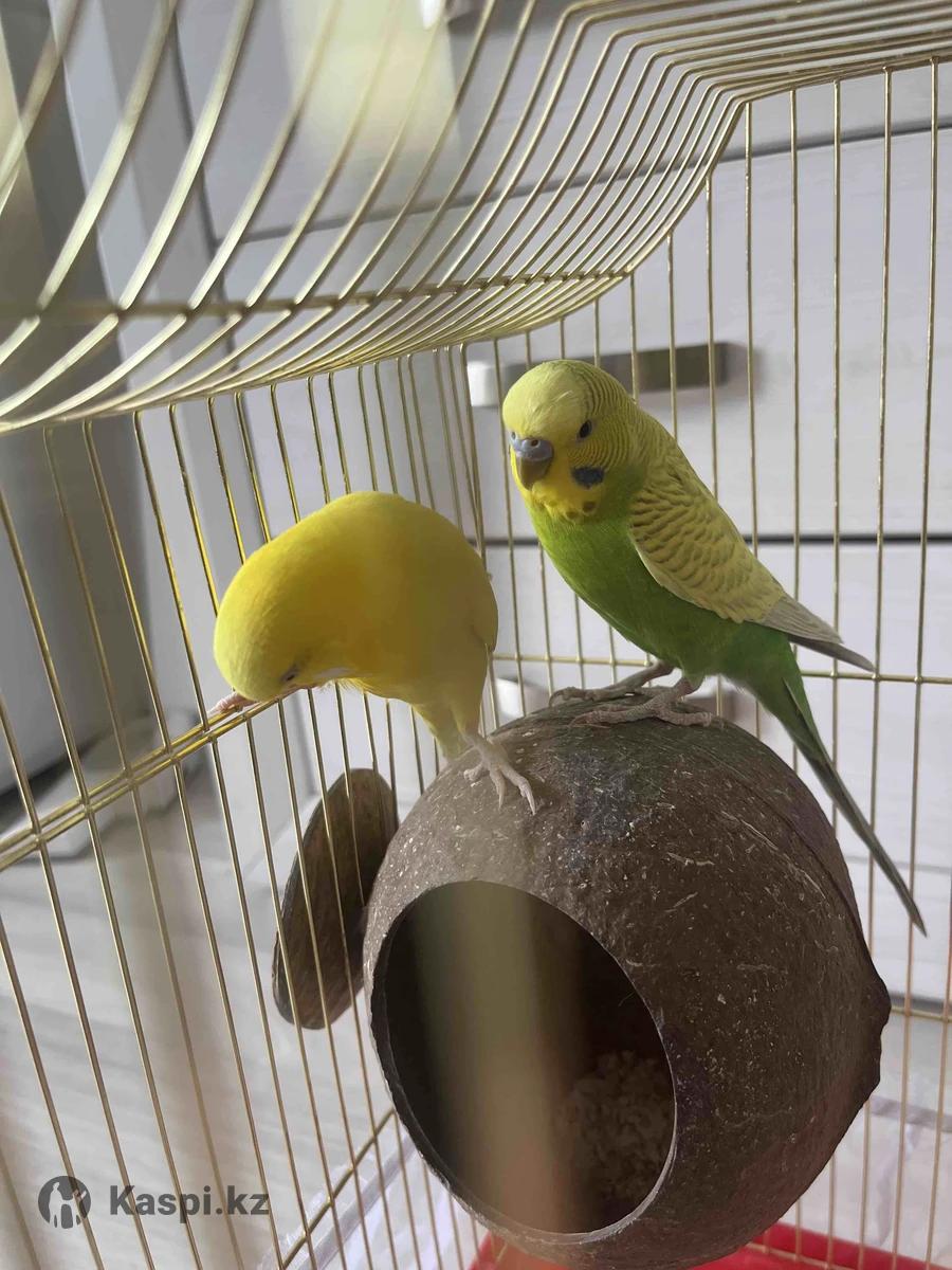 Продается пара здоровых и активных волнистых попугайчиков. Очень дружелюбные, ручные, прекрасно чувствуют себя вместе — неразлучники. Любят внимание, интересуются окружающим, издают приятные звуки. В комплекте: клетка, домик-кокос, кормушки. Причина продажи — [нет времени на уход]. Цена:10 000 тг окончательно Связь:
