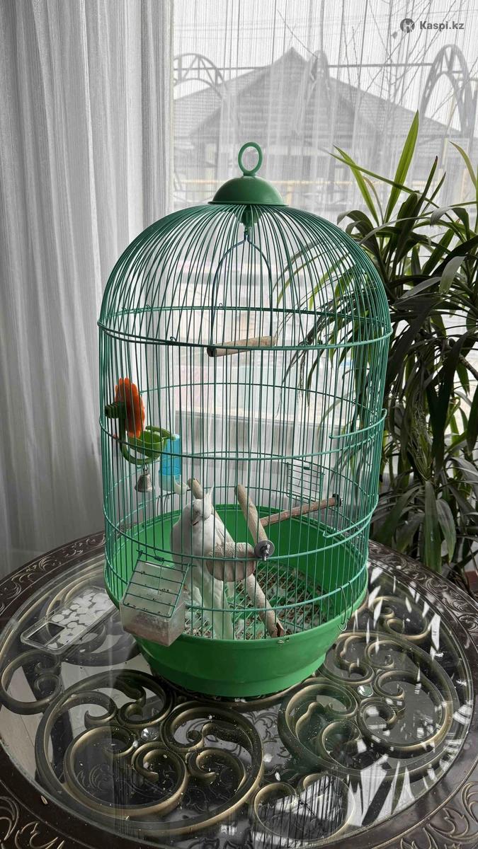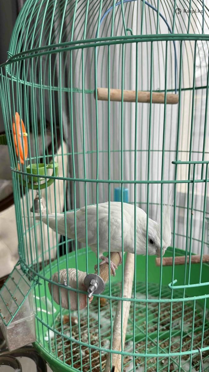 Корелла безщекая белая. Продам вместе с клеткой и кормом. Умеет гавкать!