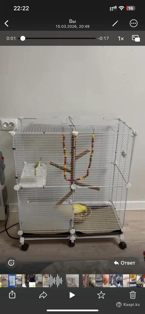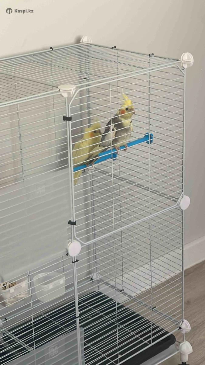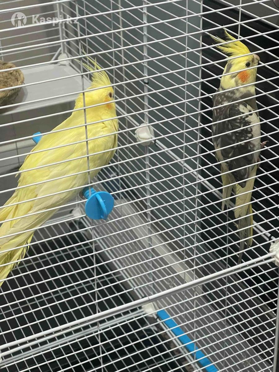 Попугай сатылады Корелла ұл мен қыз клеткасы үлкен ышынде ағашы ойыншығы бар