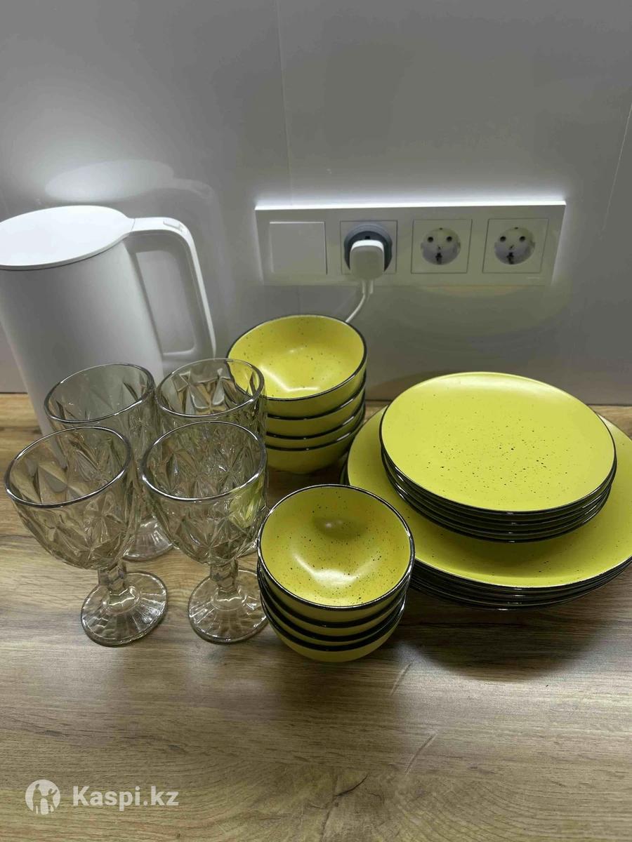 Продается чайно-столовый сервиз и бокалы на 4 персоны: - большая тарелка 4шт - маленькая тарелка 4шт - супница 4шт - кесе чайная 4 шт - бокал 4шт Без сколов, б/у
