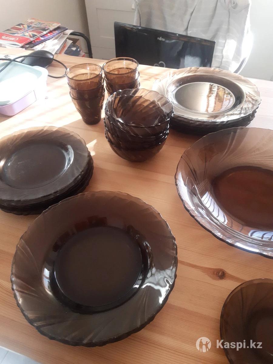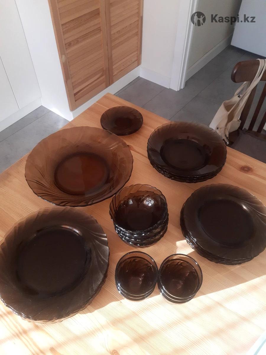Стеклянная посуда коричневого цвета,прочная,сделанного во Франции, продается набор,но можно и по отдельности по 6,4 шт