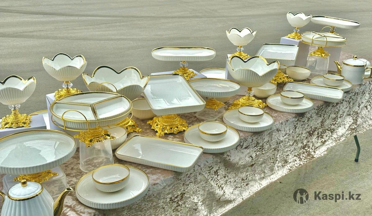50 предмет 12 персон ✅Фруктовница 14рр 2шт ✅Ассорти 14рр 2шт ✅Ассорти овальн 12рр 2шт ✅Тортница 2шт ✅Менажница 2шт ✅Хлебница 2шт ✅Конфетница 4шт ✅Тарелка 10рр 12шт ✅Пиала 4,5рр 12шт ✅Салатница 6рр 6шт ✅Чайник 2+2