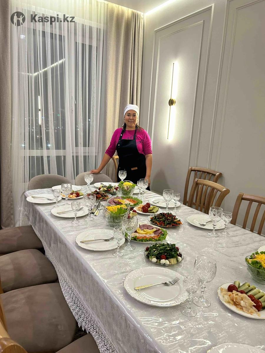 Здравствуйте я повар на дому, готовлю на семью 2-3 раза в неделю, отдельно заготовки.обучалась у профессионального повара в Астане, могу приготовить различные блюда и помогу накрыть праздничный стол для различного рода мероприятий, работаю чисто и аккуратно. Также есть услуга после посудомойщица после гостей.Прошу на писать.