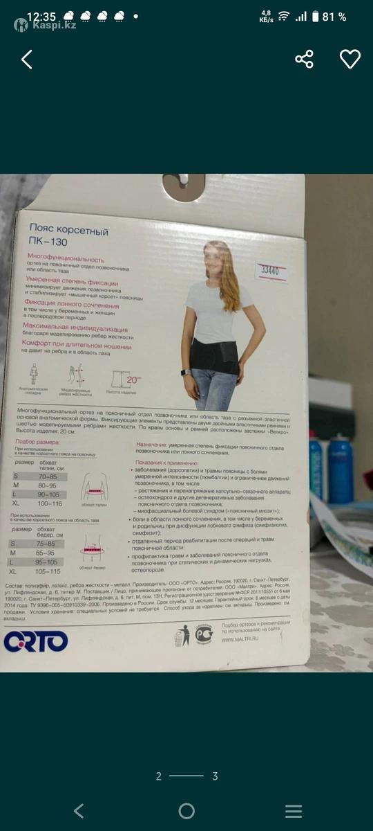Продам пояс корсетный в отличном состоянии, покупала в орто магазине за 34000 тыс.