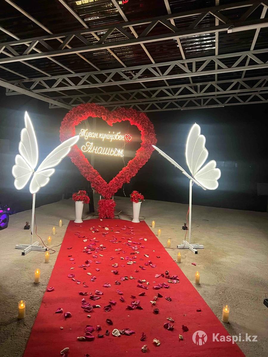 Хотите необычное поздравление звоните нам! Мы создадим прекрасную праздничную атмосферу! Подарим вашим близким отличное настроение поздравим ! У нас имеется большая красная арка сердечко! И неоновая надпись Happy Birthday! Красная дорожка лепестки
