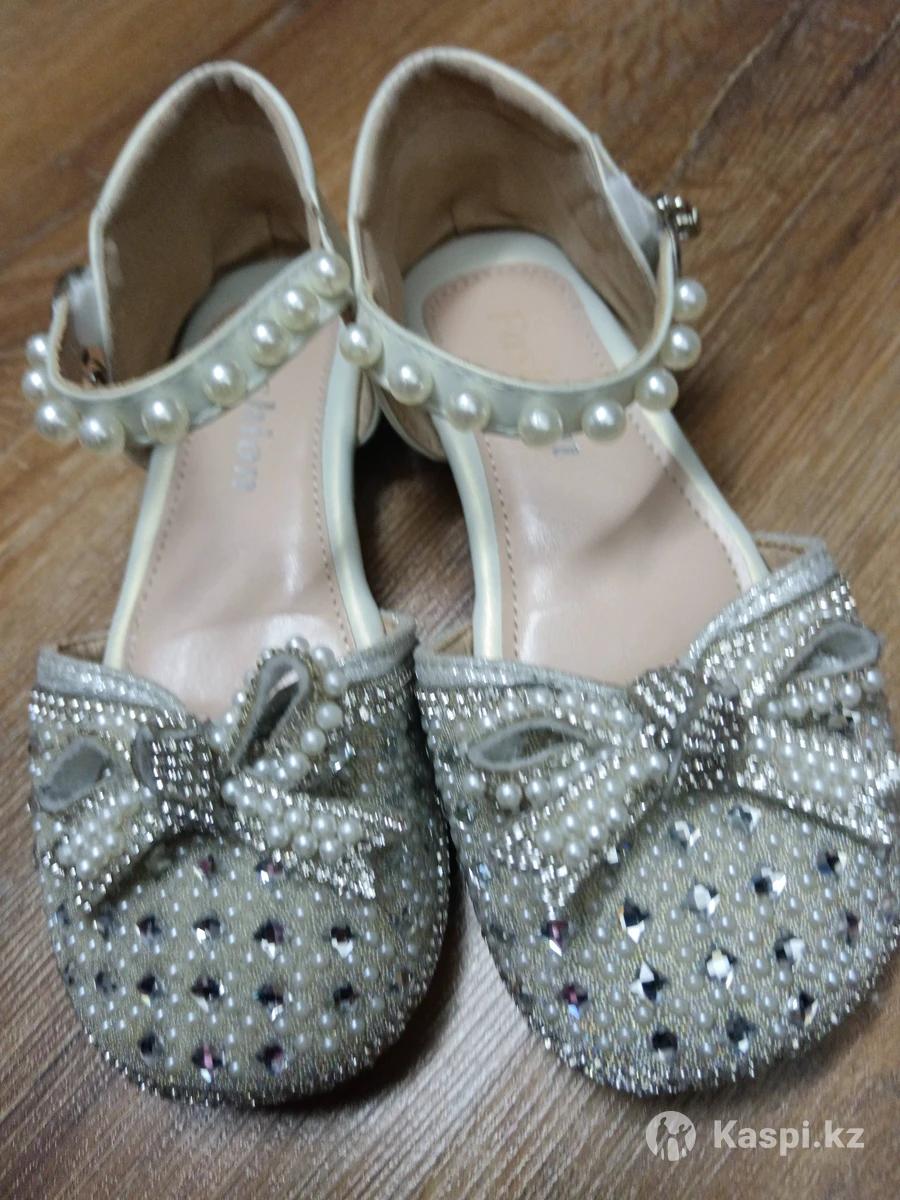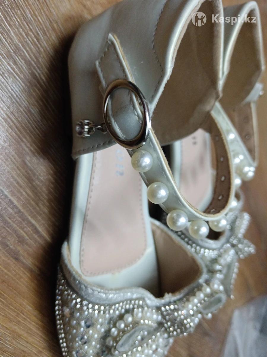 детские нарядные туфельки (балетки) для девочек. Туфельки для утренника/свадьбы. Ремешок через щиколотку, украшенный бусинами «жемчуг», и носок с бантиком, стразами и декоративными бусинами. В отличном состоянии. Размер 30